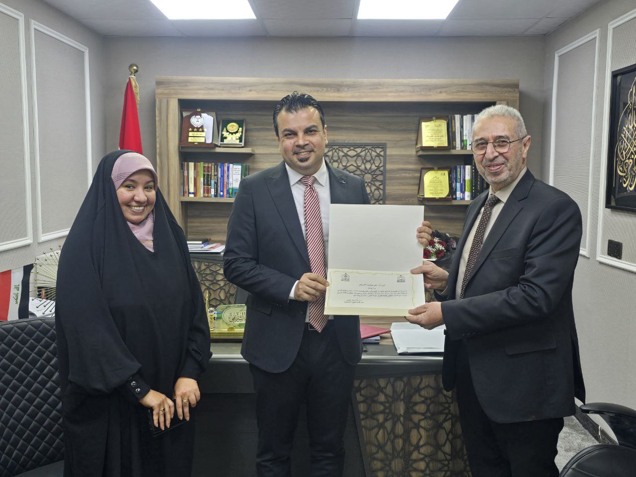 من جانبه، عبر الدكتور علي صاحب الشريفي عن شكره العميق لهذه التهنئة، مؤكدًا أن هذا الإنجاز لم يكن ليتحقق لولا دعم زملائه والمحيط الأكاديمي المحفز.
