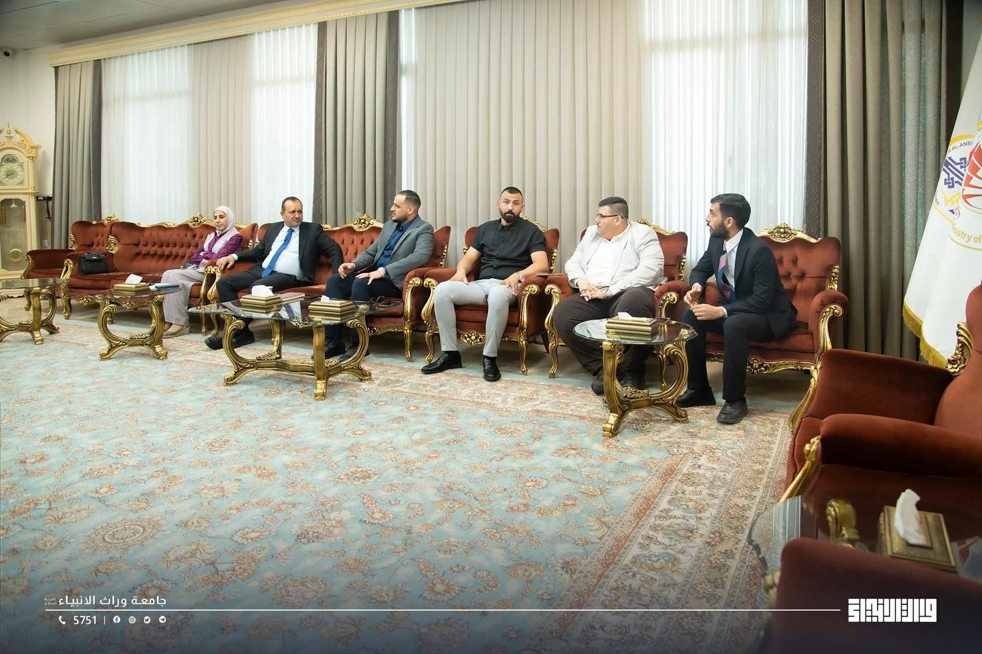 استقبل الأستاذ الدكتور واقد الموسوي، المساعد العلمي لرئيس جامعة وارث الأنبياء (عليه السلام)، والسيد مؤيد سمير الخفاف، رئيس قسم التسجيل والشؤون الطلابية، لجنةً من وزارة التعليم العالي والبحث العلمي، وذلك ضمن زيارة ميدانية تهدف إلى متابعة وتقييم مدى تنفيذ الجامعة لمبادرة "ادرس في العراق".