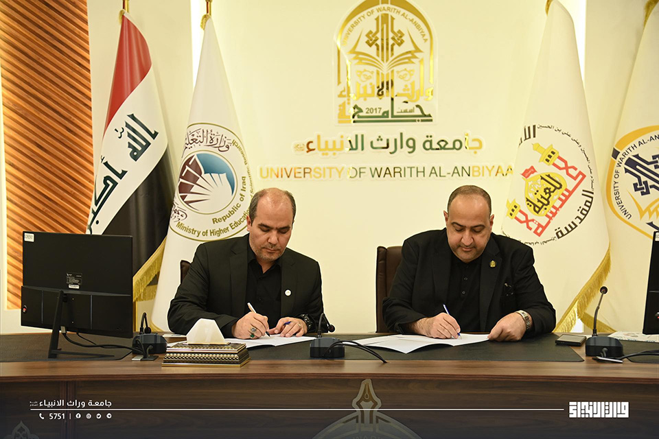 استقبل رئيس جامعة وارث الأنبياء (عليه السلام) الأستاذ الدكتور إبراهيم سعيد الحياوي نظيره رئيس جامعة الإمام الرضا (عليه السلام) الدولية في مدينة مشهد الدكتور إبراهيم دانشي فر، حيث جرى توقيع اتفاقية تعاون مشترك بين المؤسستين، تهدف إلى تطوير الجوانب العلمية وتبادل الخبرات وتعزيز التعاون الأكاديمي، فضلًا عن فتح آفاق مشتركة في مجال البحث العلمي وتبادل البرامج الأكاديمية، بما يسهم في الارتقاء بمستوى التعليم العالي لدى الطرفين، ويدعم تحقيق أهداف التنمية المستدامة، ولا سيما (الهدف الرابع :التعليم الجيد ) ، و(الهدف التاسع : البحث العلمي والابتكار)، و(الهدف السابع عشر : تعزيز الشراكات المؤسسية لتحقيق التنمية).