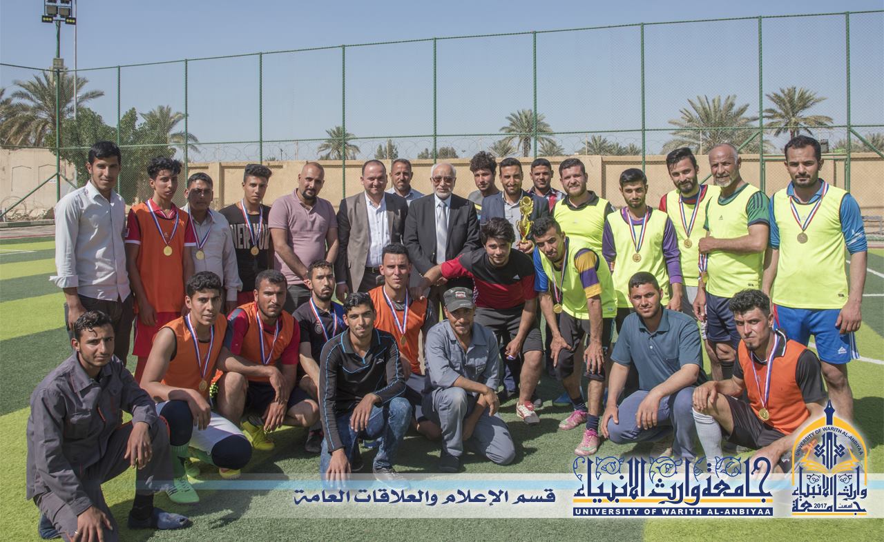 اقام قسم النشاطات الطلابية بطولة موظفي جامعة وارث الانبياء والتي اقُيمت على ملعب الجامعة بمشاركة ثمانية فرق من اقسام وكليات الجامعة، وقال رئيس قسم النشاطات الطلابية م.م. همام الخفاجي اختتمت البطولة بالمباراة النهائية التي جرت بين فريقي قسم الخدمات العامة (باللون البرتقالي) وفريق رئاسة الجامعة (باللون الاصفر ) وانتهت بفوز فريق الخدمات على فريق الرئاسة بنتيجة ٥-١ وبحضور السيد رئيس الجامعة الذي وزع جوائز البطولة للفائزين.