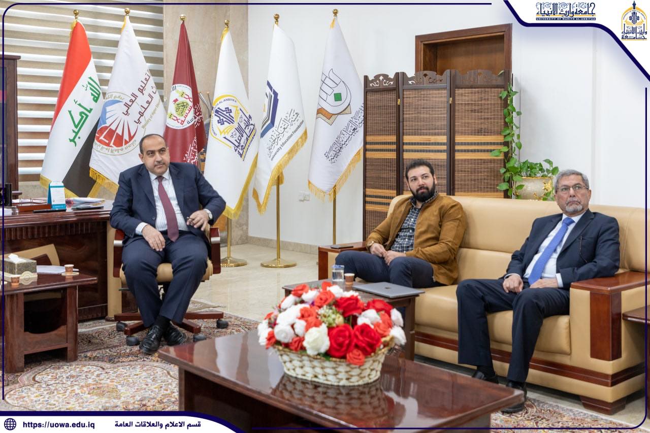وكان في استقباله رئيس الجامعة الاستاذ الدكتور ابراهيم الحياوي الذي استمع الى عروض الشركة والمشاريع التي نفذتها داخل وخارج العراق.