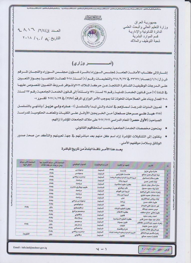التعليم تصدر أمرا وزاريا بتعيين الأوائل على الكليات والمعاهد للعام الدراسي 2016 -2017