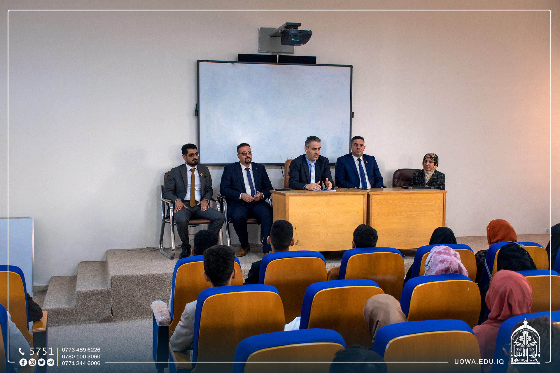 إذ القى السيد عميد الكلية كلمةً رحب فيها بالطلبة الجدد متمنياً لهم عاماً مكللاً بالنجاح والتفوق ومؤكداً على ضرورة اهتمام الطلبة بالجانب العلمي والأخلاقي.