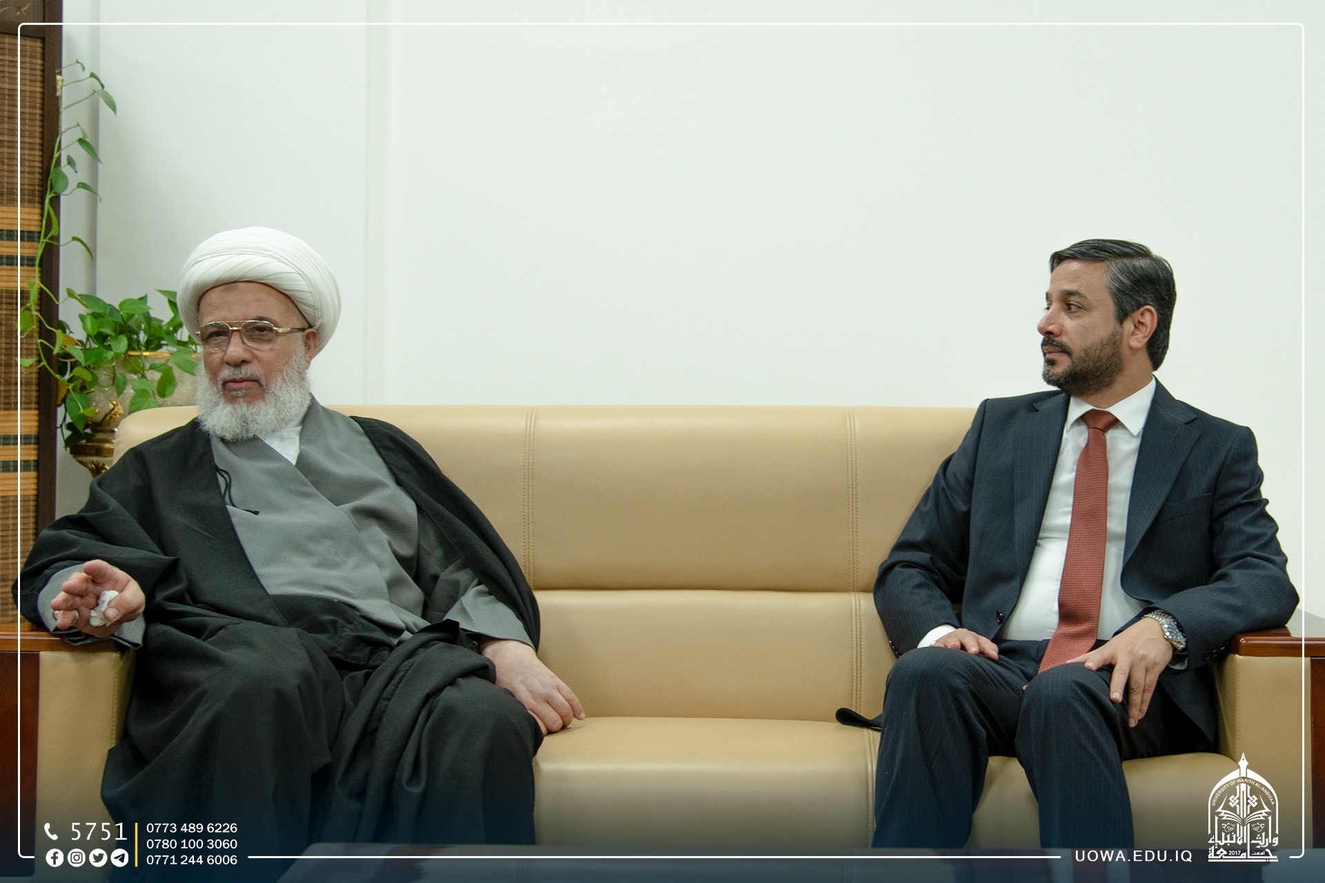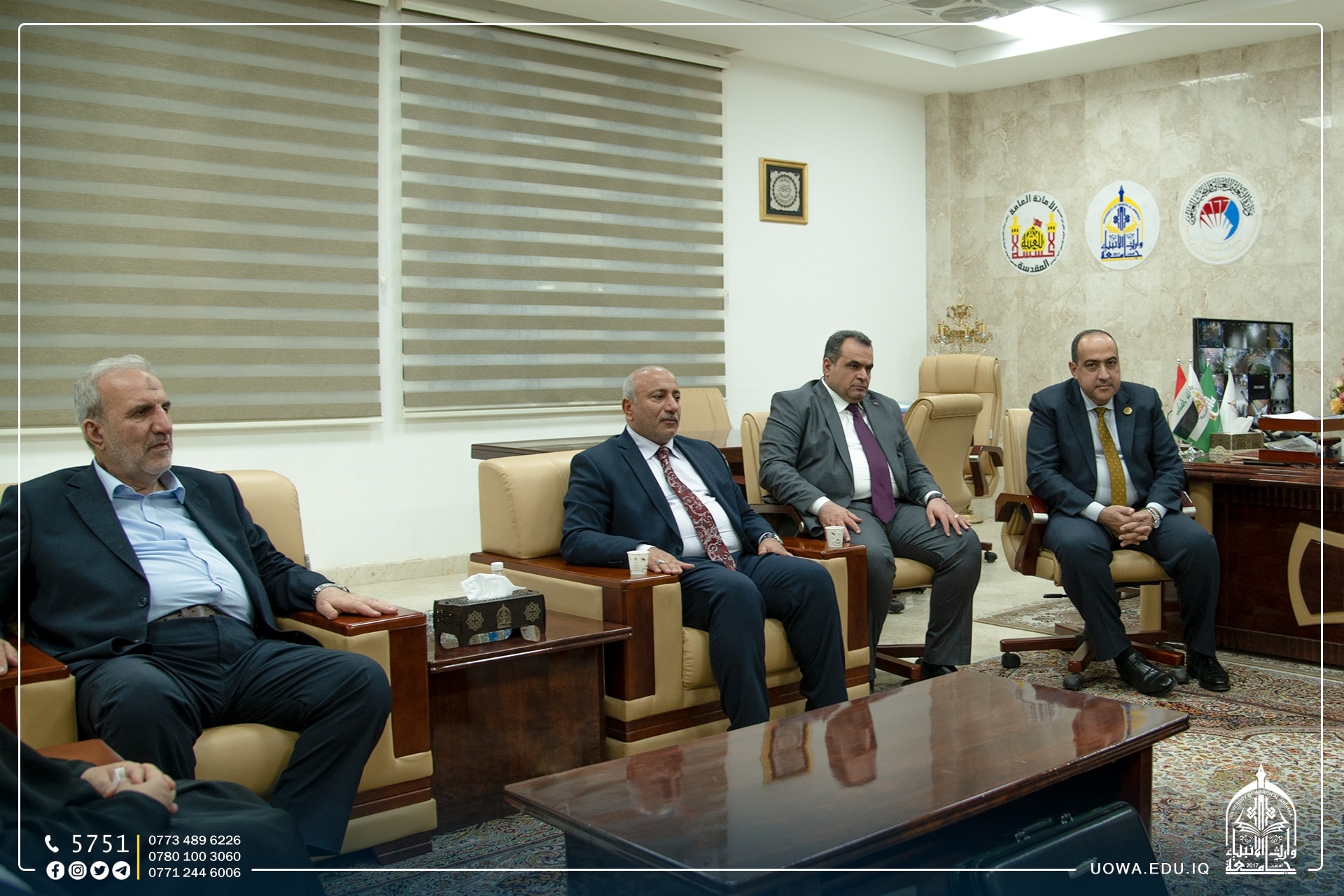 استضاف السيد رئيس الجامعة الاستاذ الدكتور ابراهيم الحياوي في مكتبه الخاص، سماحة الشيخ عبد المهدي الكربلائي(دام عزه) ومعالي وزير التعليم الدكتور نعيم العبودي والسيد محافظ كربلاء المهندس نصيف الخطابي والسيد الامين العام للعتبة الحسينية الاستاذ حسن رشيد والدكتور ستار الساعدي رئيس هيئة الصحة والتعليم الجامعي.