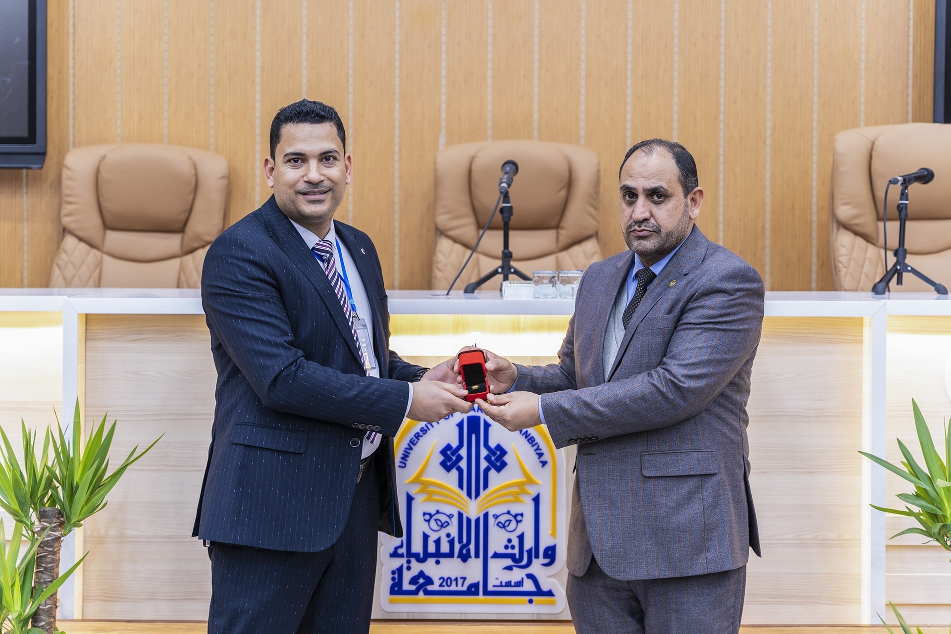 جانب مصور من الجلسة المسائية "للمؤتمر الوطني الاول" الذي اقامته جامعة وارث الانبياء(عليه السلام)/ كلية العلوم الإسلامية، وبالتعاون مع قسم تطوير الموارد البشرية" والذي تضمن ٥٣ بحث علمي فازت منها خمسة بحوث، وتم تكريمهم بدرع التميز اما بقية البحوث فتم تكريمهم بجوائز أخرى.
