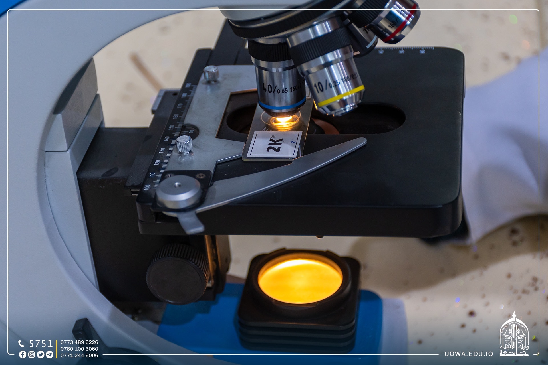 ألقاها التدريسي. م.م هاشم محمد الاعرجي لمدة ثلاثة ايام وقد تناولت الدورة ثلاثة محاور، المحور الاول تناول الاجزاء الرئيسية للمجهر الضوئي، والثاني تضمن مبدأ العمل من ناحية مصدر الضوء، أما المحور الثالث فتناول اساس عمل المجهر الضوئي من ناحية قوة التكبير والايضاح.
