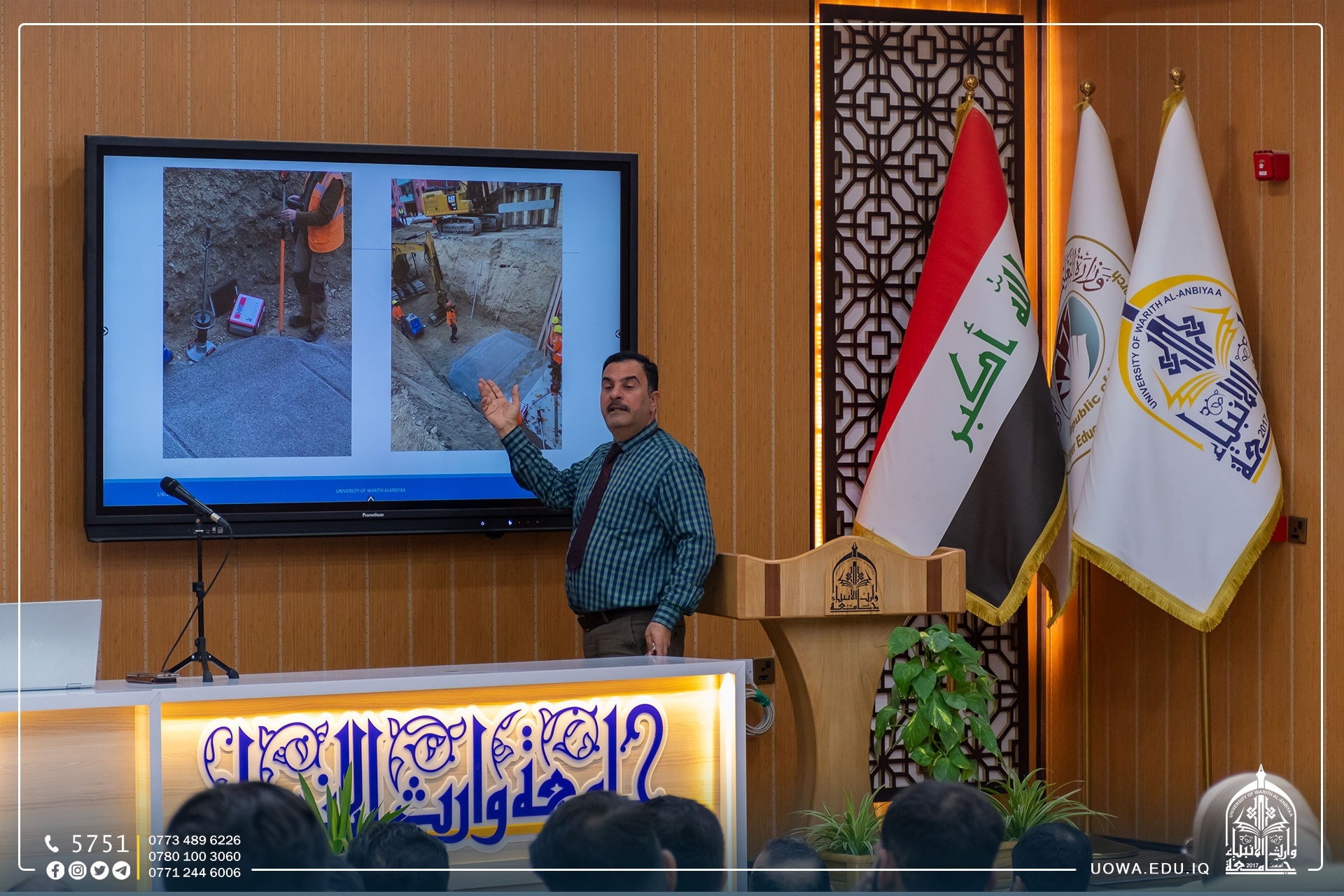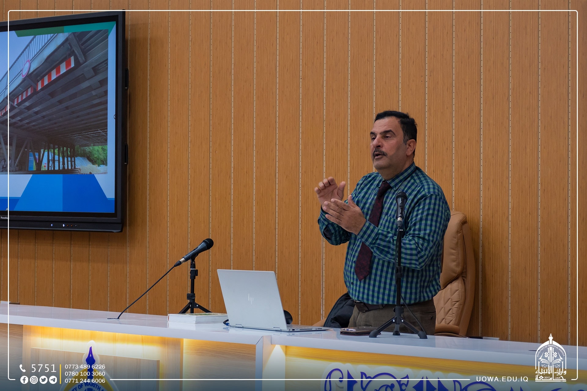 اقام قسم الهندسة المدنية بالتعاون مع قسم الشؤون العلمية في جامعة وارث الانبياء(عليه السلام) ندوة علمية بعنوان(Modern Construction Technology Using Hydraulic Jacks Systems Rapid Bridge Replacement on 5 Days Timelapse) ، قدمها المتخصص في تصميم الهياكل الحديدية وتصميم المنشئات الكونكريتية الأستاذ الدكتور هيثم حسن متعب الدعمي من جامعة بابل.