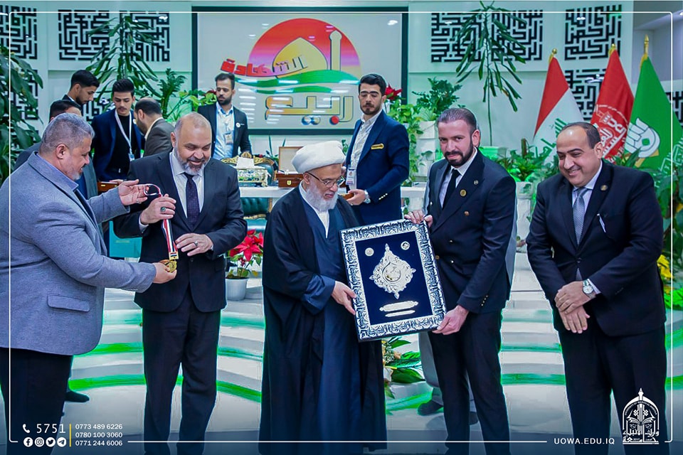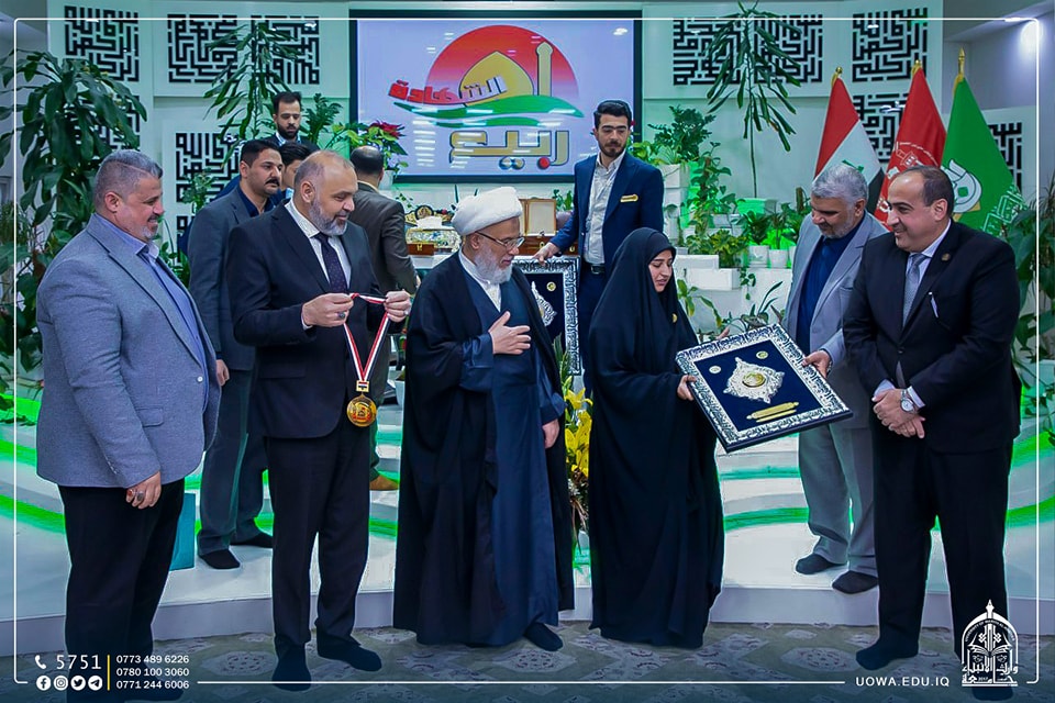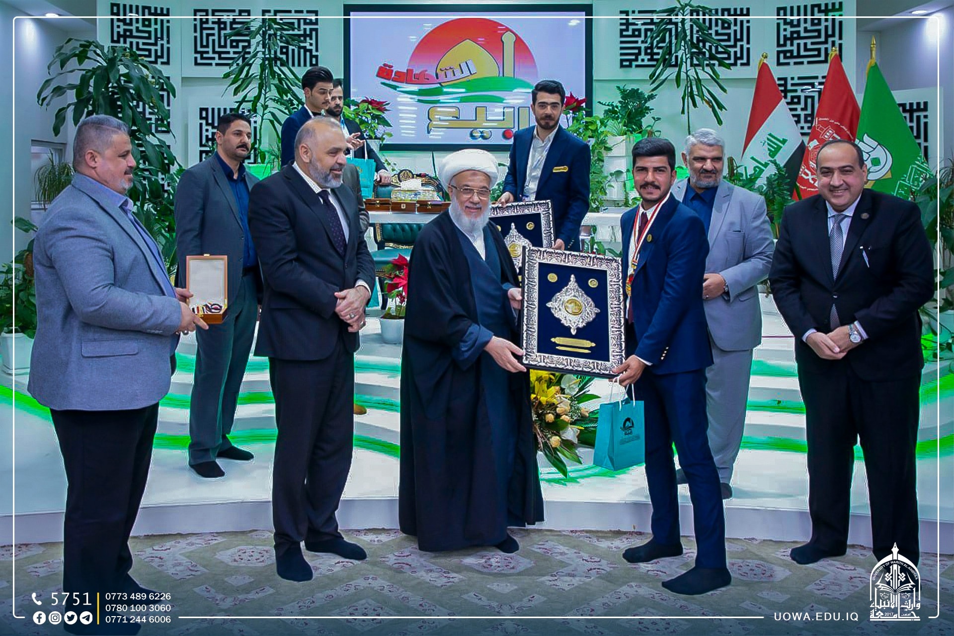 على هامش "مهرجان ربيع الشهادة" كّرم المتولي الشرعي للعتبة الحسينية المقدسة سماحة الشيخ عبد المهدي الكربلائي (دام عزه)، وبحضور السيد رئيس الجامعة الاستاذ الدكتور ابراهيم الحياوي والاستاذ الدكتور واقد الموسوي عميد كلية الهندسة ضمن فقرة تكريم العراقيين المبدعين مجموعة من خريجي جامعة وارث الانبياء (عليه السلام) عن بحوث تخرجهم بحضور عدد من التدريسيين والطلبة وأولياء الأمور فضلا عن ضيوف المهرجان من خارج العراق الذين أبدو انبهارهم واندهاشهم بنوع البحوث أثناء العرض والتي ترتقي إلى مستوى الدراسات العليا.