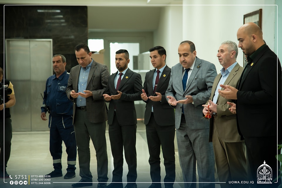 بحضور رئاسة جامعة وارث الانبياء(عليه السلام)، عمادة وطلبة كلية العلوم الإسلامية ينظمون وقفة حداد وقراءة سورة الفاتحة على روح المرحوم الطالب (ألق جبار جوده الفتلاوي )، الذي وافاه الاجل اثر حادث مؤسف سائلين الله (عز وجل) أن يتغمده برحمته الواسعة، ويلهم ذويه الصبر والسلوان.