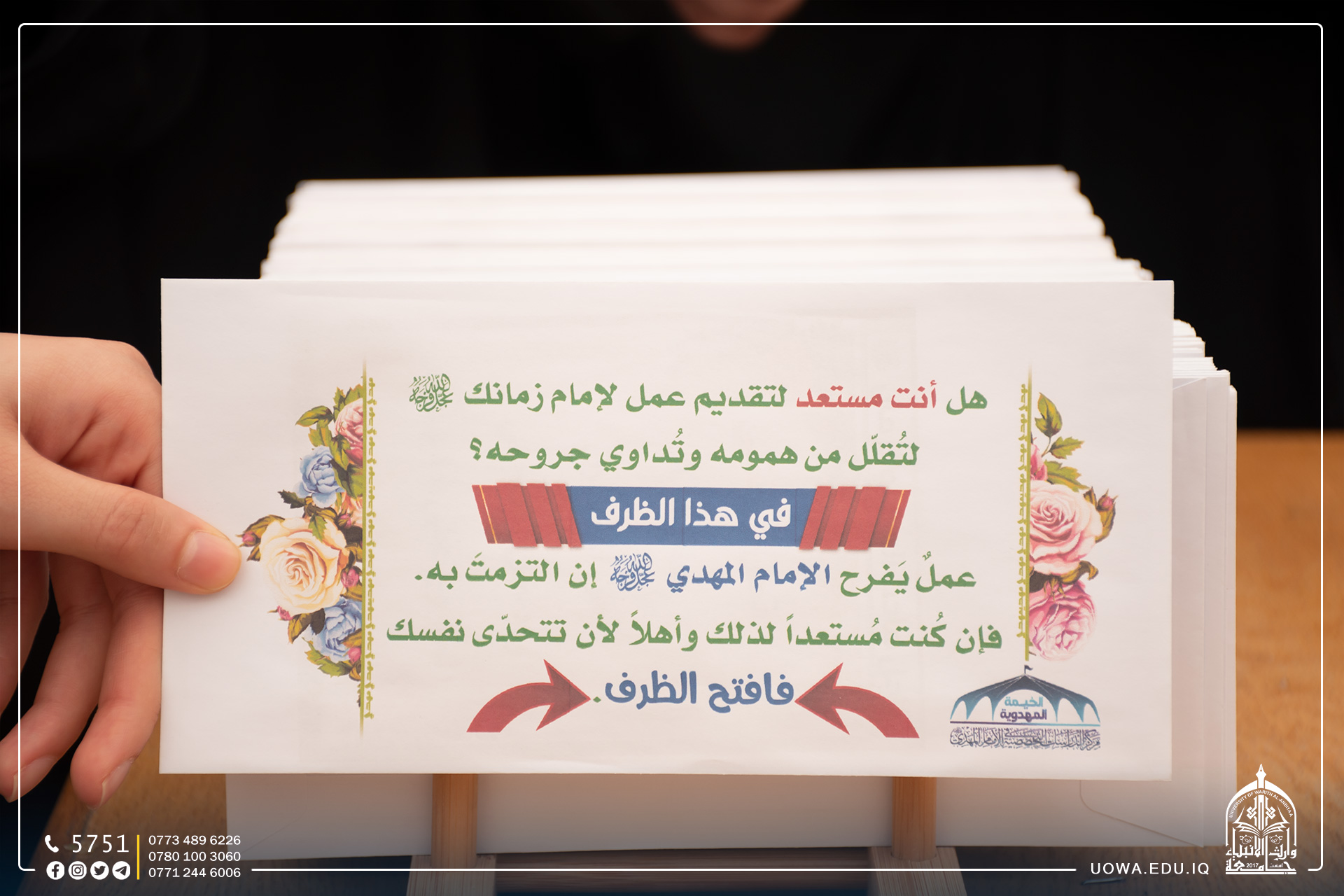 أقامت جامعة وارث الأنبياء (عليه السلام)، وبالتعاون مع مركز الدراسات التخصصية في الامام المهدي (عج) مهرجان الخيمة المهدوية الثالث، إذ افتتح السيد رئيس الجامعة الاستاذ الدكتور ابراهيم الحياوي فعاليات هذه الخيمة، وجاءت هذه الخيمة لنشر الفكر المهدوي الصحيح وتقوية الارتباط الروحي بإمام العصر أرواحنا له الفداء لطلاب الجامعة.