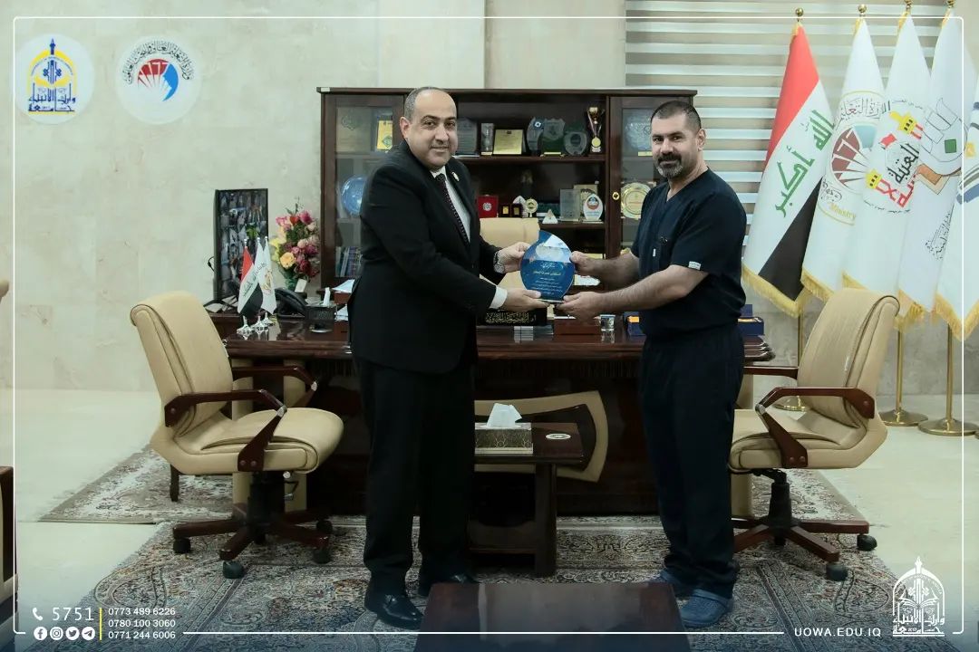 رئاسة جامعة وارث الأنبياء (عليه السلام) المتمثلة بالأستاذ الدكتور إبراهيم الحياوي تكرم الاطباء المدربين بدرع الشكر والتقدير لجهودهم القيمة والمساهمة في إنجاح هذا الكورس المهم الذي نال استحسان الطلبة.