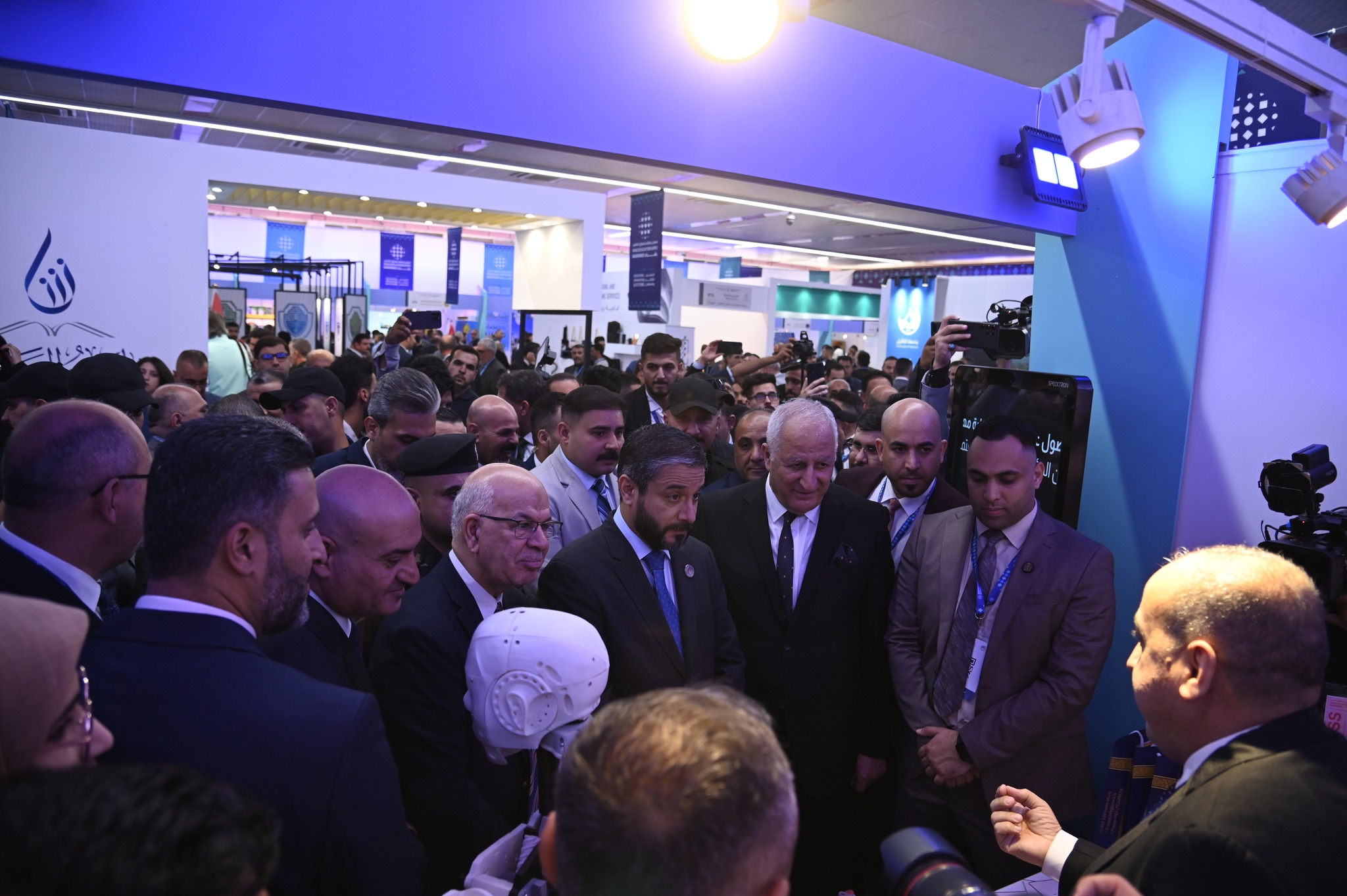 جانب مصور من زيارة معالي وزير التعليم العالي والبحث العلمي الدكتور نعيم العبودي الى جناح جامعة وارث الانبياء (عليه السلام ) ضمن فعاليات مؤتمر ومعرض العراق للتعلم
