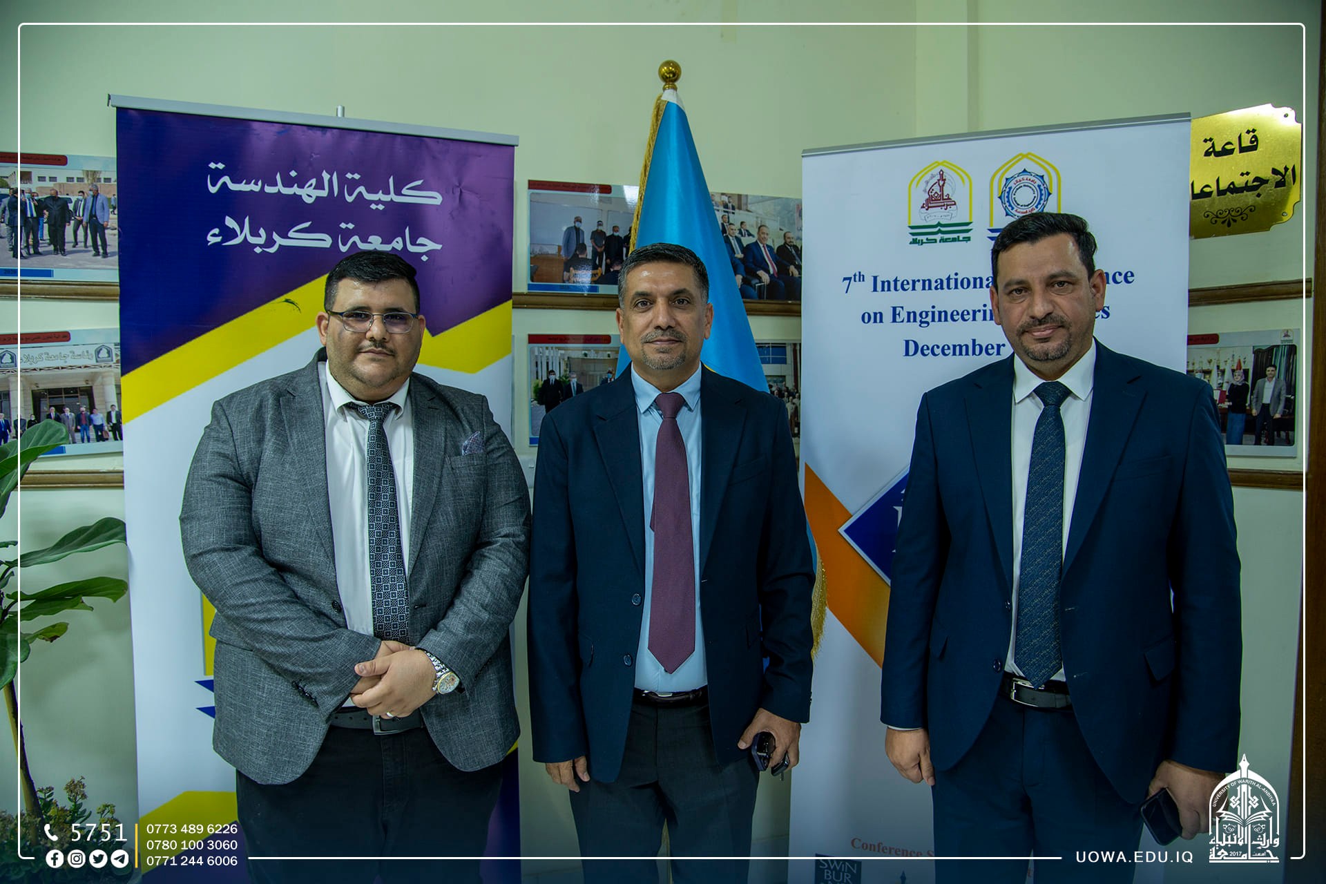 بحضور مستشار وزير التعليم العالي والبحث العلمي الاستاذ الدكتور علاء عبدالحسين ،شارك المساعد العلمي الاستاذ الدكتور واقد الموسوي ، وعميد كلية الهندسة الاستاذ المساعد الدكتور حسين هادي العوادي، والوفد المرافق لهما ، في فعاليات "المؤتمر الدولي السابع للعلوم الهندسية" الذي اقامته كلية الهندسة في جامعة كربلاء بالتعاون مع كلية الهندسة في جامعة وارث الانبياء(عليه السلام).