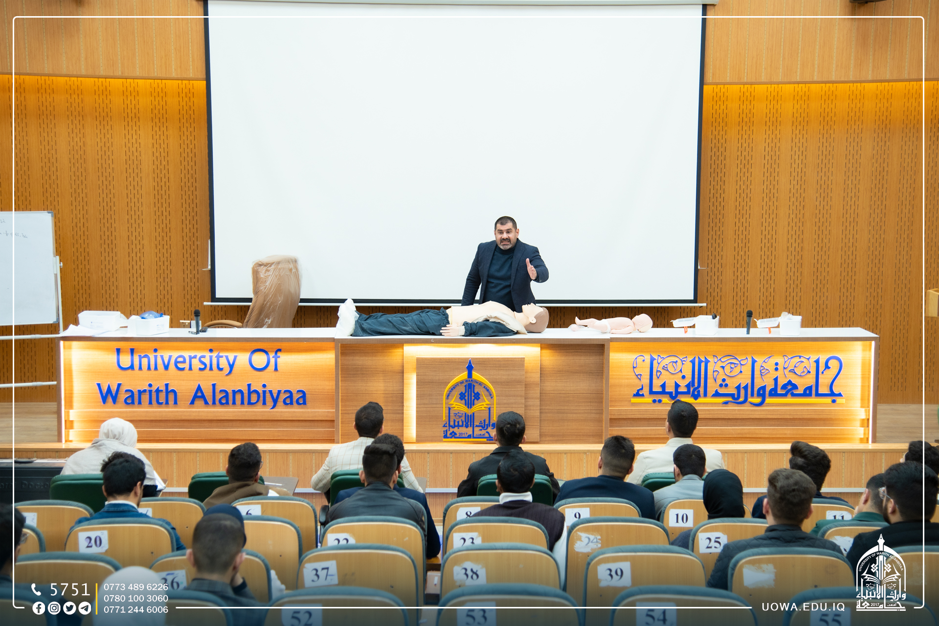 أقامت كلية الطب في جامعة وارث الانبياء(عليه السلام) وبالتعاون مع "المركز الاقليمي لطب الطوارئ" ورشة تدريبية عن أسس إنقاذ حياة كبار السن والاطفال، ، قدمت هذه الورشة لطلبة المرحلة الاولى على يد اخصائيي طب الطوارئ.