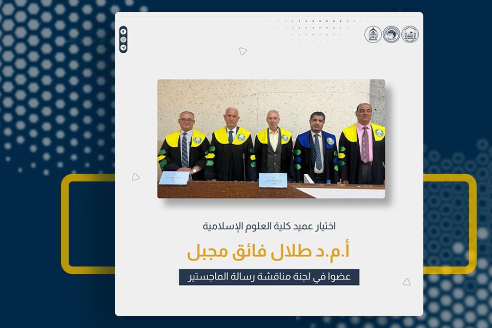 اختير السيد عميد كلية العلوم الإسلامية في جامعة وارث الأنبياء (عليه السلام)، الأستاذ المساعد الدكتور طلال الكمالي، عضوًا في لجنة مناقشة رسالة ماجستير لأحد طلاب الدراسات العليا في كلية العلوم الإسلامية بجامعة بابل.