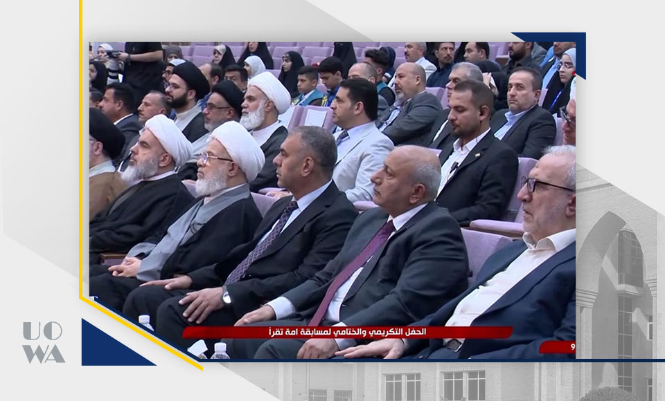 شاركت رئاسة جامعة وارث الأنبياء (عليه السلام) في الحفل الختامي لمسابقة (أمة تقرأ) التي نظمتها العتبة الحسينية المقدسة بالتعاون مع وزارة التربية العراقية. حضر الحفل ممثل المرجعية الدينية العليا والمتولي الشرعي للعتبة الحسينية سماحة الشيخ عبد المهدي الكربلائي (دام عزه) والأمين العام للعتبة الحاج حسن رشيد العبايجي (دام توفيقه).
