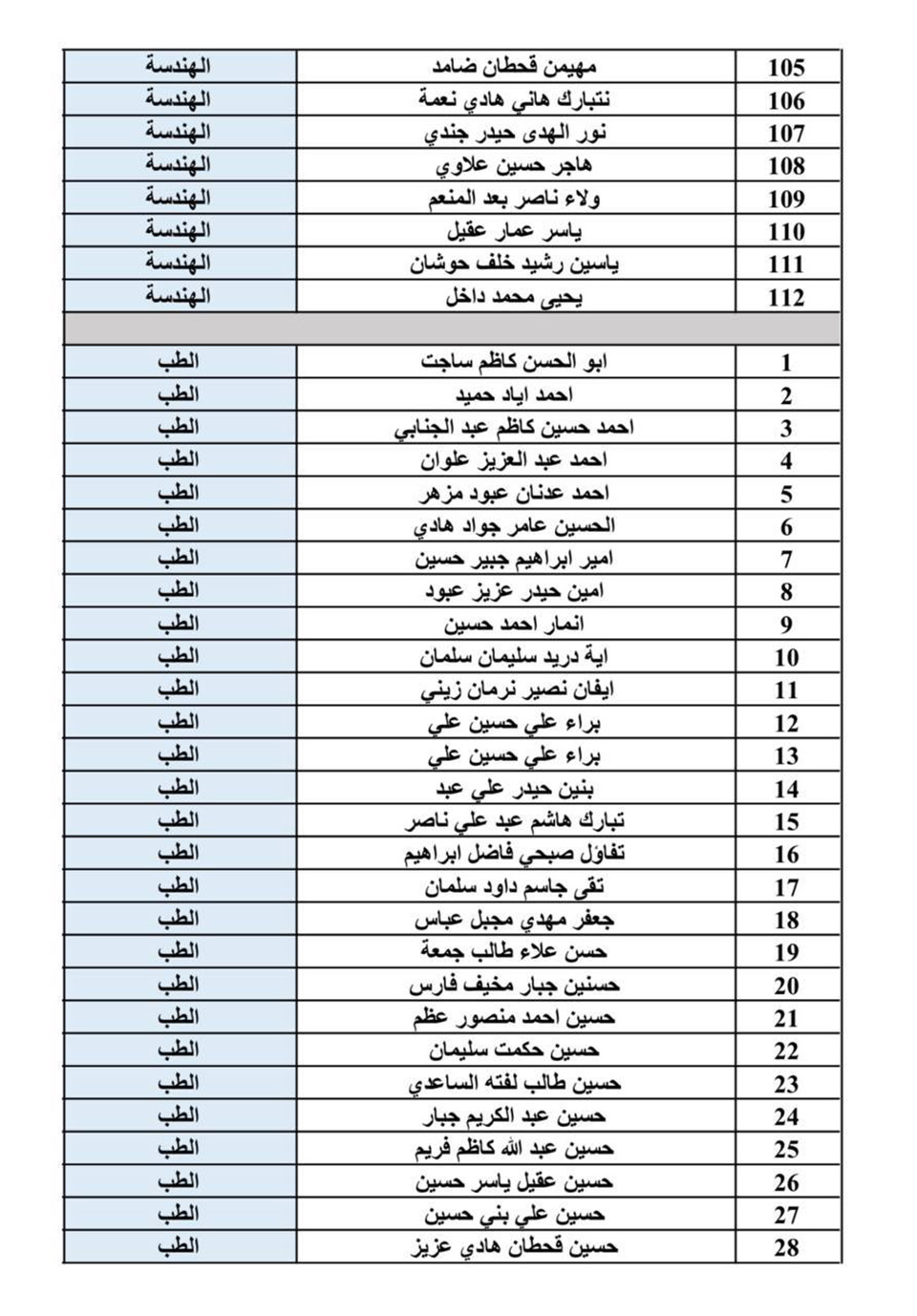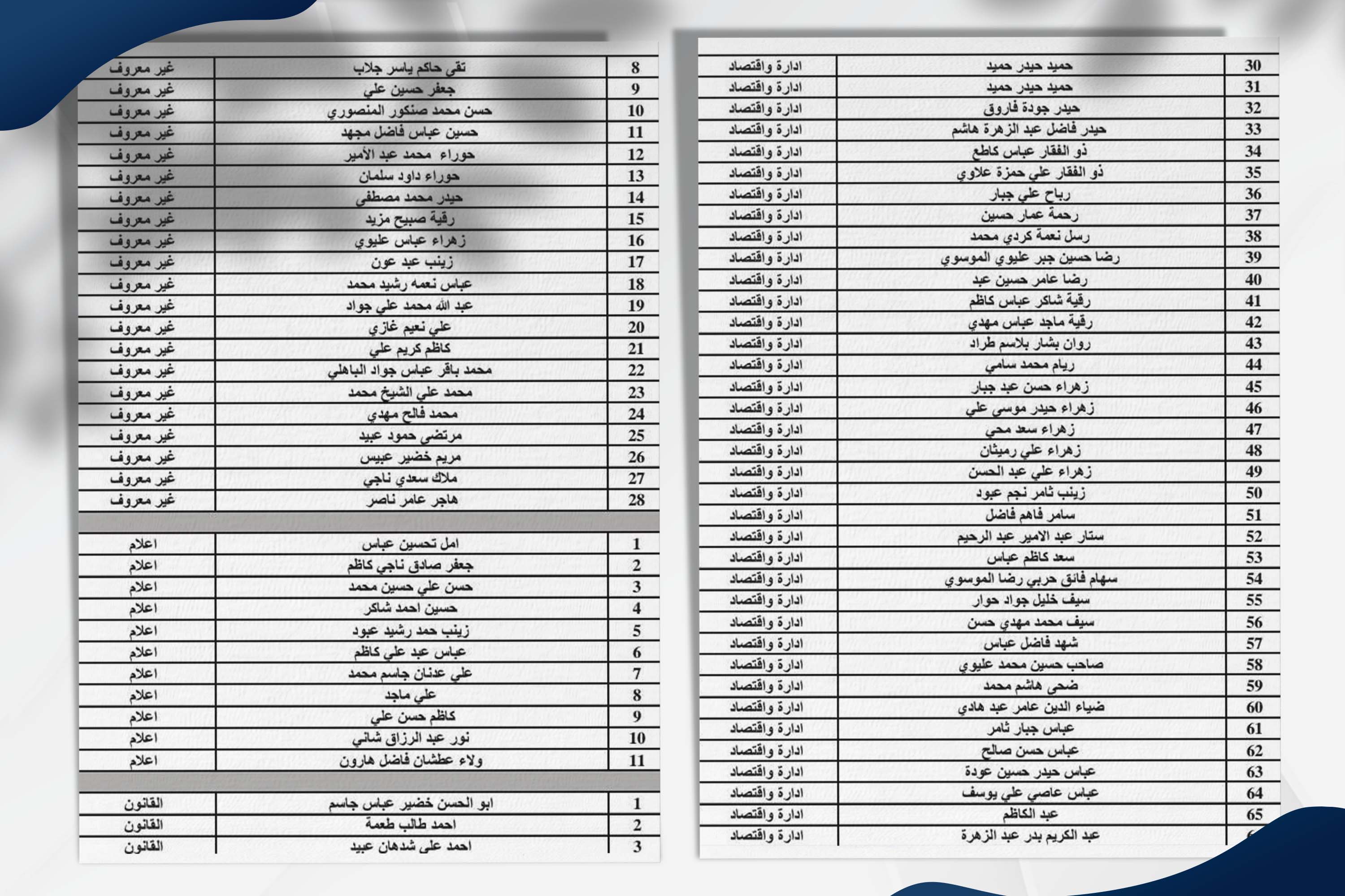 يجب على الطلبة المدرجة أسماؤهم في القوائم أدناه مراجعة قسم الشؤون القانونية في جامعة وارث الأنبياء (عليه السلام) خلال مدة أربعة أيام، اعتبارًا من يوم غد السبت الموافق 28/12/2024.