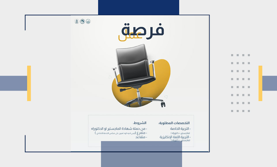 أعلنت جامعة وارث الأنبياء عن حاجتها لتعيين أساتذة متفرغين من حملة شهادتي الدكتوراه أو الماجستير في تخصصي التربية الخاصة وتدريس اللغة الإنجليزية. للراغبين في التقديم، يُرجى زيارة الرابط التالي: