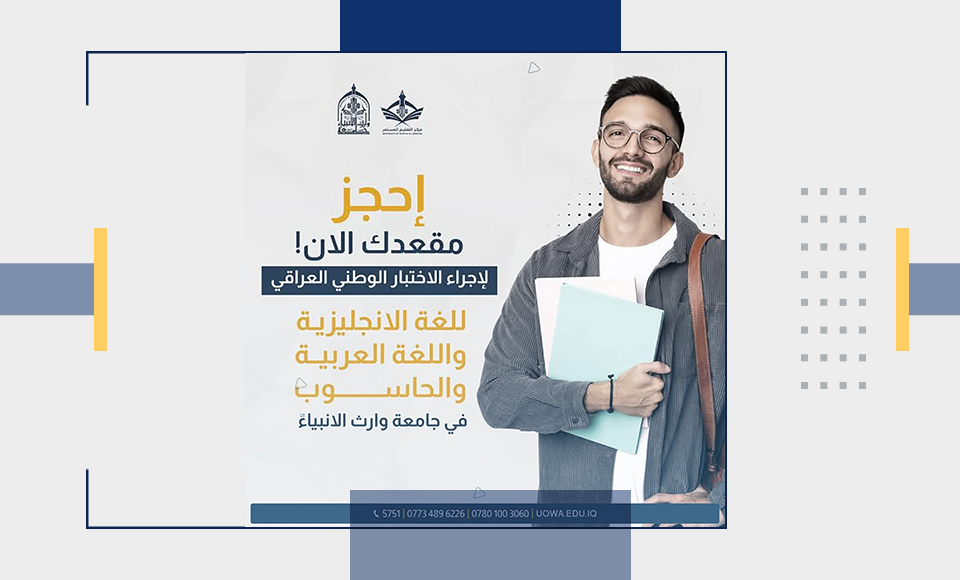 يسر مركز التعليم المستمر في جامعة وارث الأنبياء الإعلان عن فتح باب التسجيل لأداء الاختبار الوطني في المواد التالية: