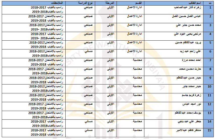 قامة عمادة الكلية ومجلسها الممثل بالاستاذ الدكتور عامر العطوي ود.نضال المالكي ود.فهد الشمري بتكريم الطلبة الاوائل للدراسة الصباحية والمسائية للمرحلتين الاولى والثانية وللقسمين المحاسبة وادارة اعمال في يوم الاحد 3/3/2019 وكذلك تم تكريم افضل طالبة محتشمة لكل قسم وقد حضر مجموعة من السادة التدريسيين والطلبة حفل التكريم