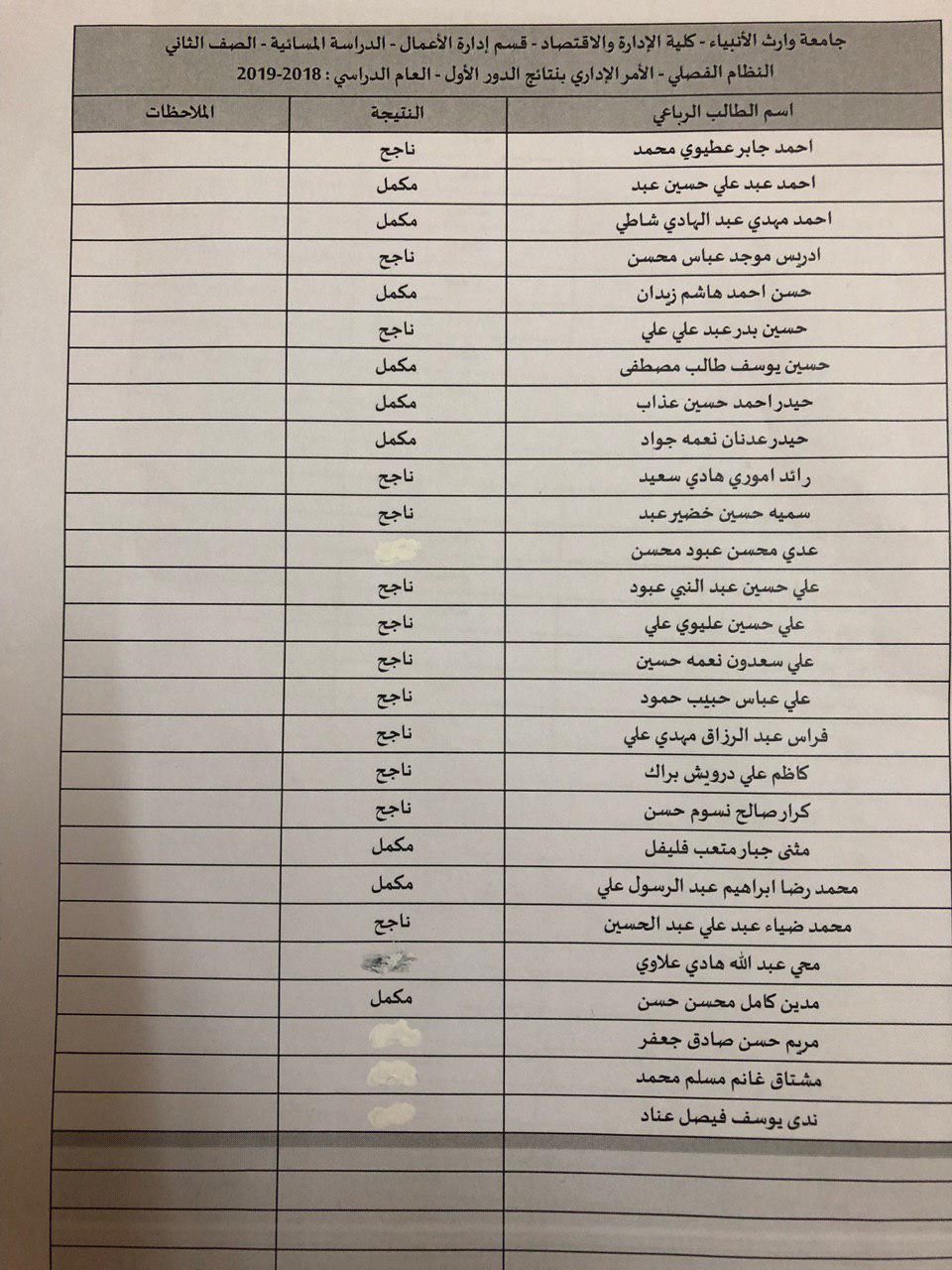 نتائج النهائية للكورس الثاني 2018-2019 / قسم ادارة الاعمال