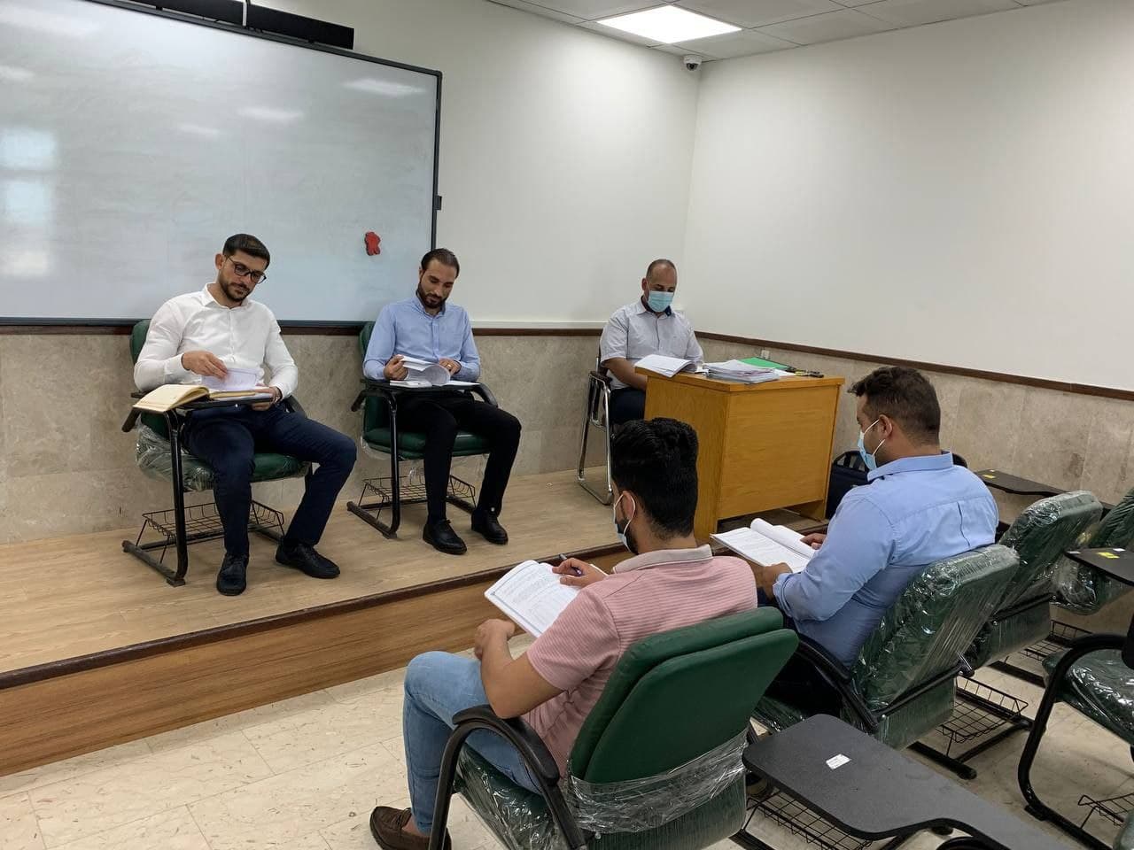 بأشراف السيد عميد كلية الادارة والاقتصاد الاستاذ الدكتور عواد الخالدي وم.د فهد مغيمش الشمري رئيس قسم ادارة الاعمال وم.د هبة الله مصطفى السيد علي رئيس قسم المحاسبة، جرت مناقشة طلبة المرحلة الرابعة لكلية الادارة والاقتصاد ولقسميها العلميين (المحاسبة - ادارة الاعمال) وللدراسيتين الصباحي والمسائي ابتداءً من يوم الثلاثاء المصادف 29/6/2021