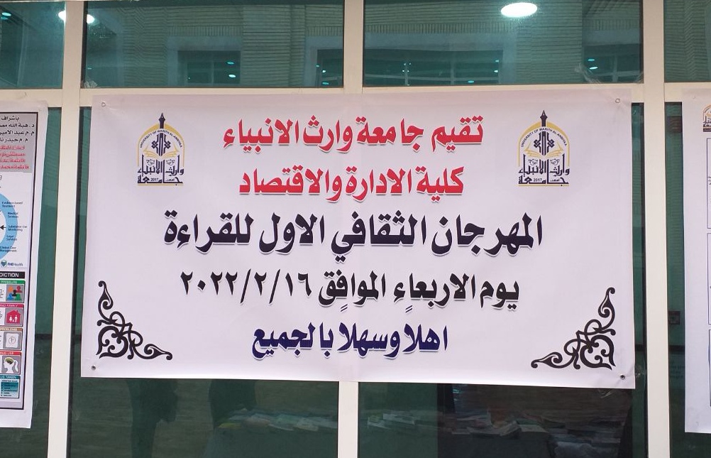 نحو اعداد وتحضير من قبل نخبة من طلبة قسم المحاسبه للمرحلة الأولى وتحت اشراف الدكتورة هبة الله مصطفى و المدرس المساعد عبد الامير صبار والمدرس المساعد علي محمد حسن الكيشوان والمدرس المساعد محمد هاشم الموسوي اقامت كلية الادارة والاقتصاد /قسم المحاسبة المهرجان الثقافي الاول للقراءة.