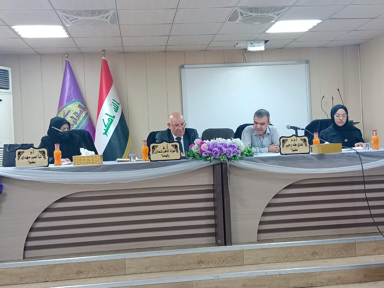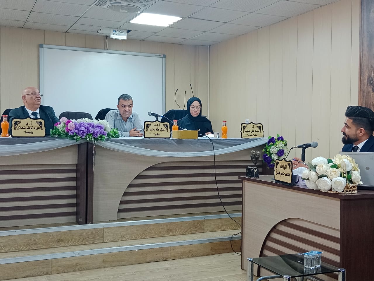 كليه الادارة والاقتصاد /جامعة وارث الأنبياء لجنة مناقشة علميه في قسم الاحصاء بالجامعة المستنصريه للطالب (محمد جاسم صادق)عن بحثه الموسوم (مقارنه كفاءة تصميم التجارب العاملية الكسرية للقطاعات الكاملة العشوائية وتصميم - 1 الامثل-) وذلك في يوم الخميس الموافق ٧/٤/٢٠٢٢ .