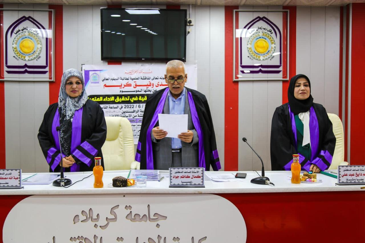 تدريسية من كلية الادارة والاقتصاد جامعة وارث الأنبياء تشترك في مناقشة بحث الدبلوم العالي في جامعة كربلاء.