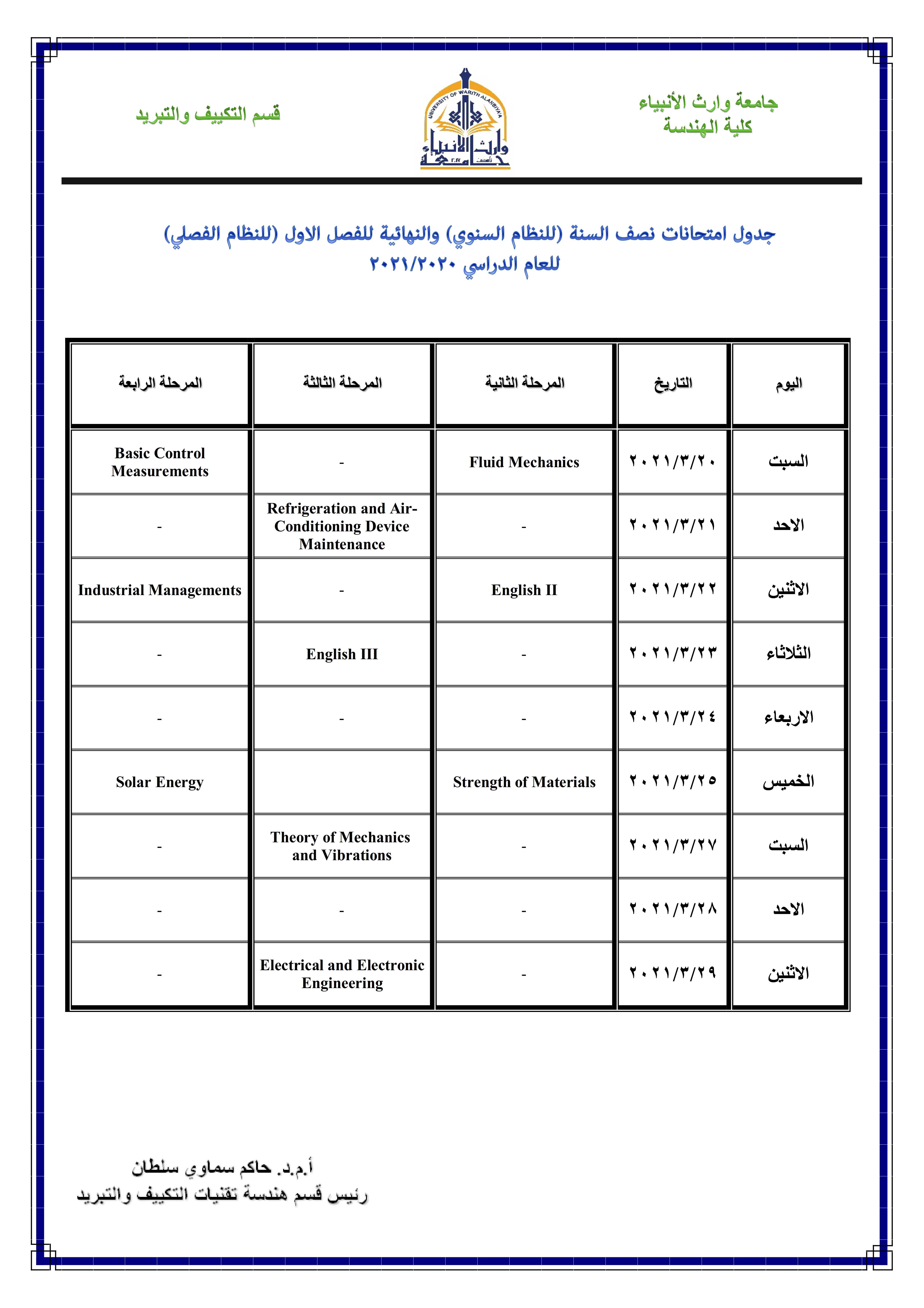 4. قسم هندسة تقنيات التكييف و التبريد ( [email protected] )