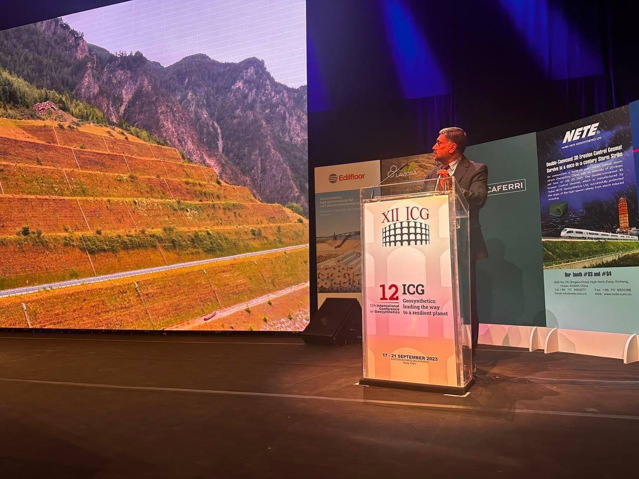 في "مؤتمر جمعية الجيوسيثنتك الدولي"والمقام في ايطاليا ،الذي يعد اكبر تجمع علمي دولي يتناول احدث الطرق والاساليب التي وصل اليها العالم في تحسين وتثبيت التربة والمنشآت المقامة عليها كالاساسات والسدود والانفاق والطرق والمنحدرات، وجاءت هذه المشاركة لعميد كلية الهندسة ممثلا عن الجمعية الجيوتقنية العراقية.