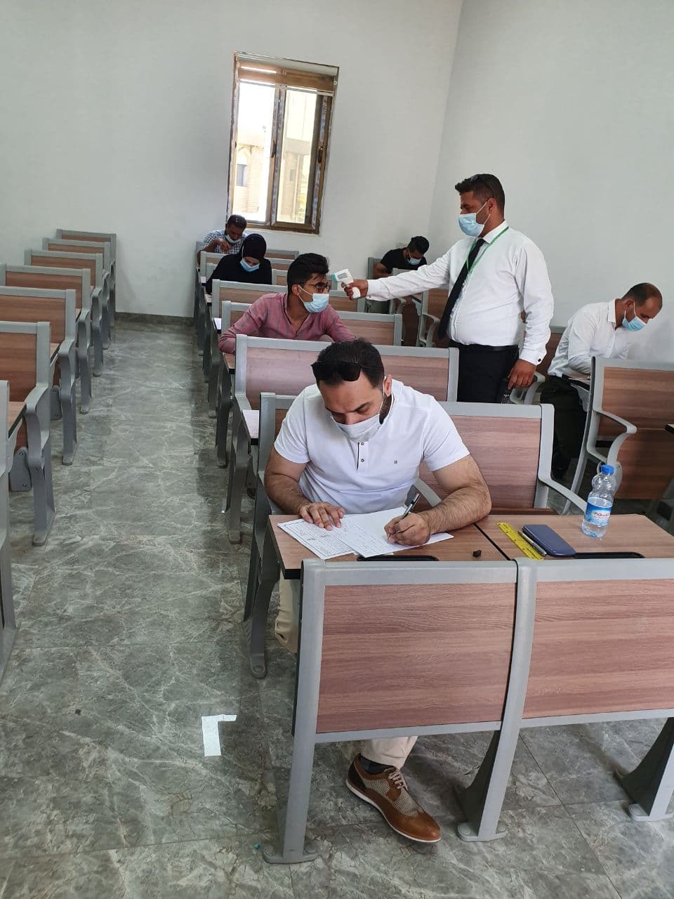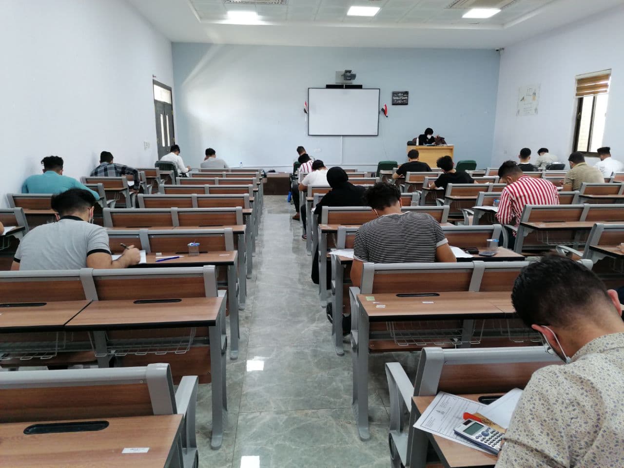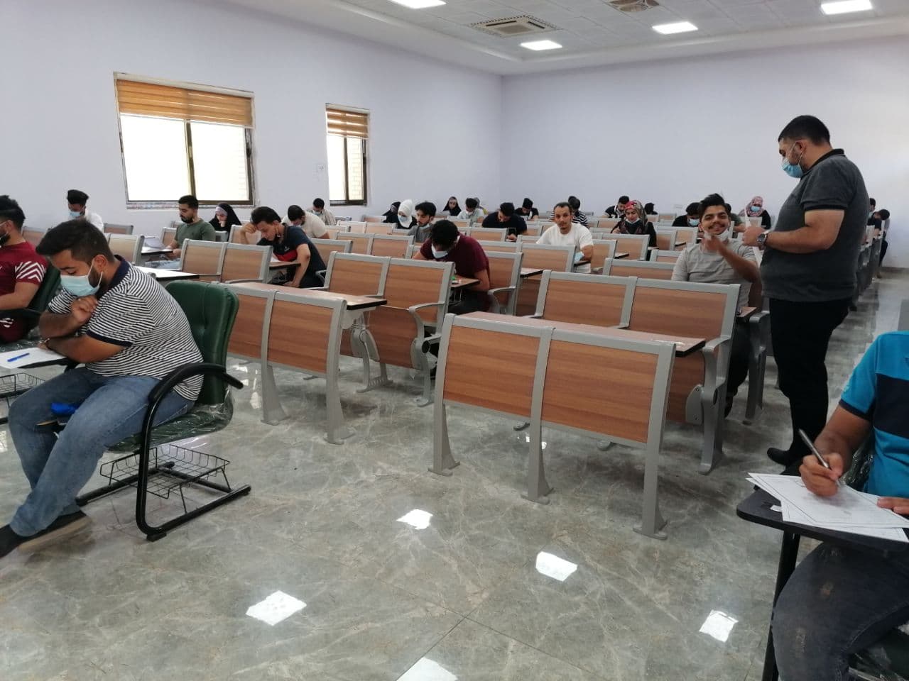 جانب من الامتحان الحضوري لطلبة المرحلة الرابعة - قسم الهندسة المدنية يوم الثلاثاء المصادف 28/7/2021 وسط اجراءات وقائية مشددة.