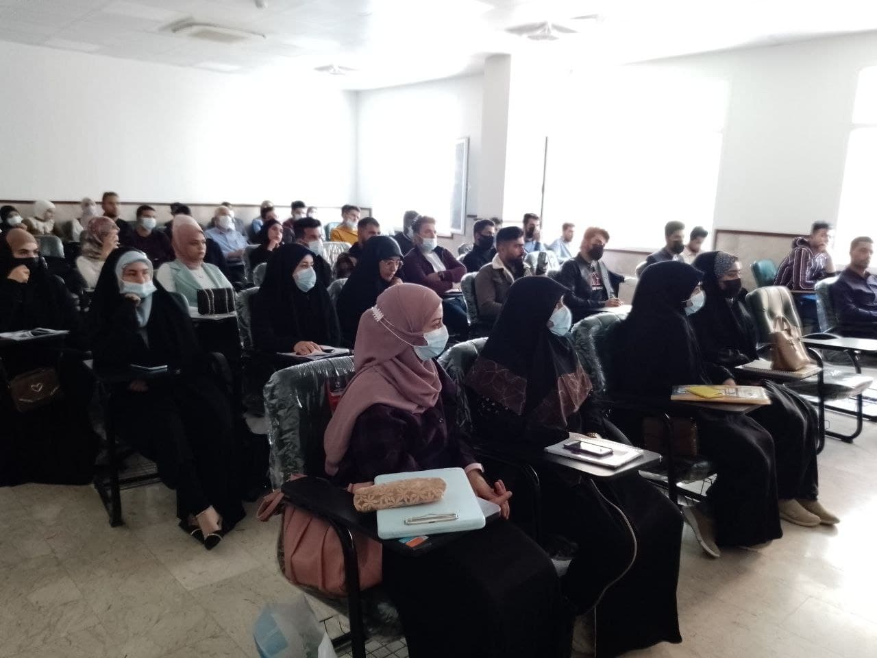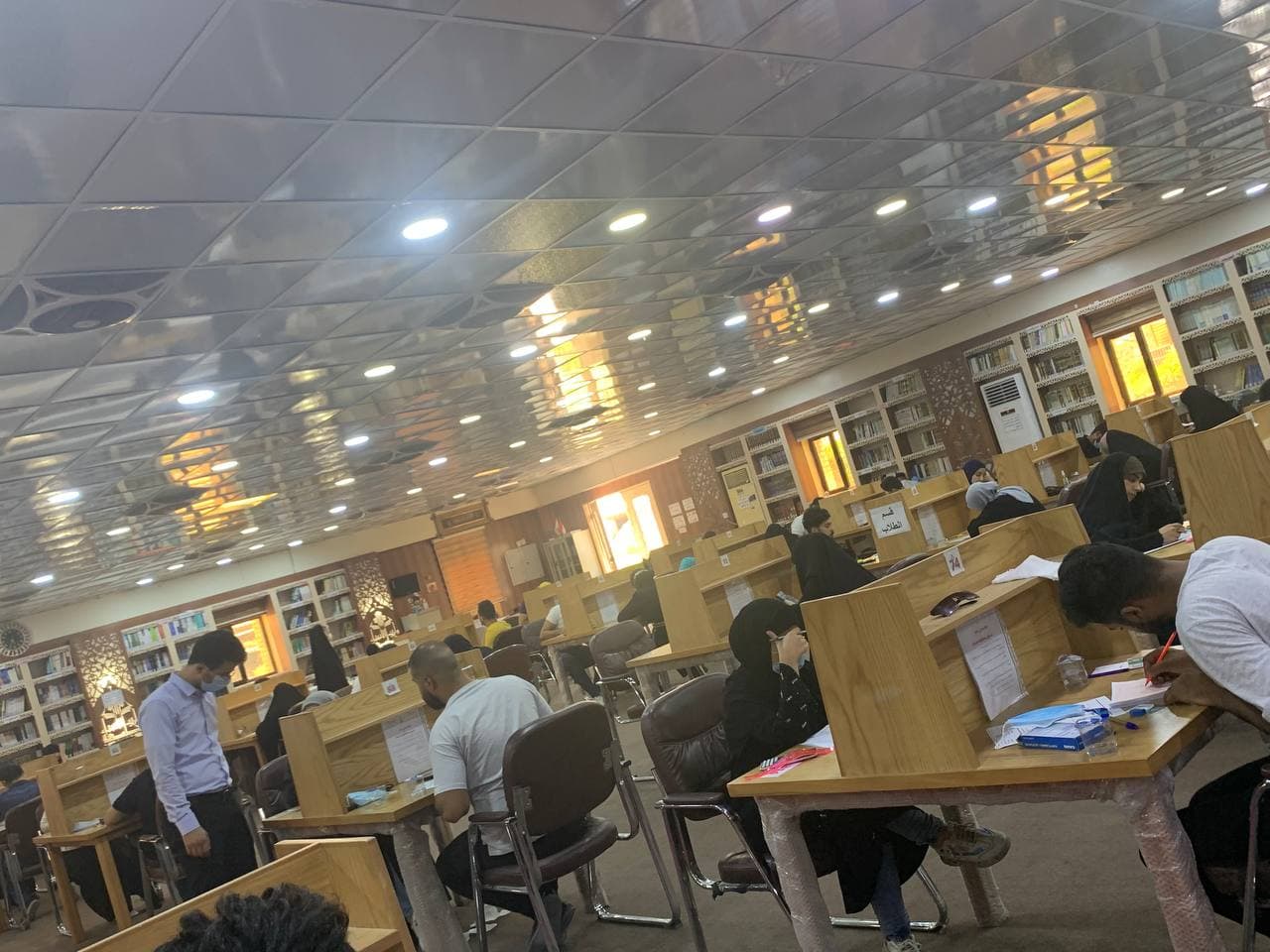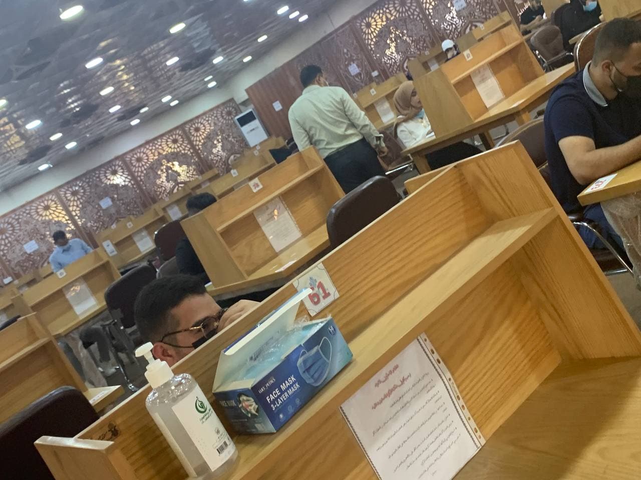 جانب من الامتحان الحضوري لطلبة المرحلة الرابعة - قسم الهندسة المدنية يوم الثلاثاء المصادف 28/7/2021 وسط اجراءات وقائية مشددة.