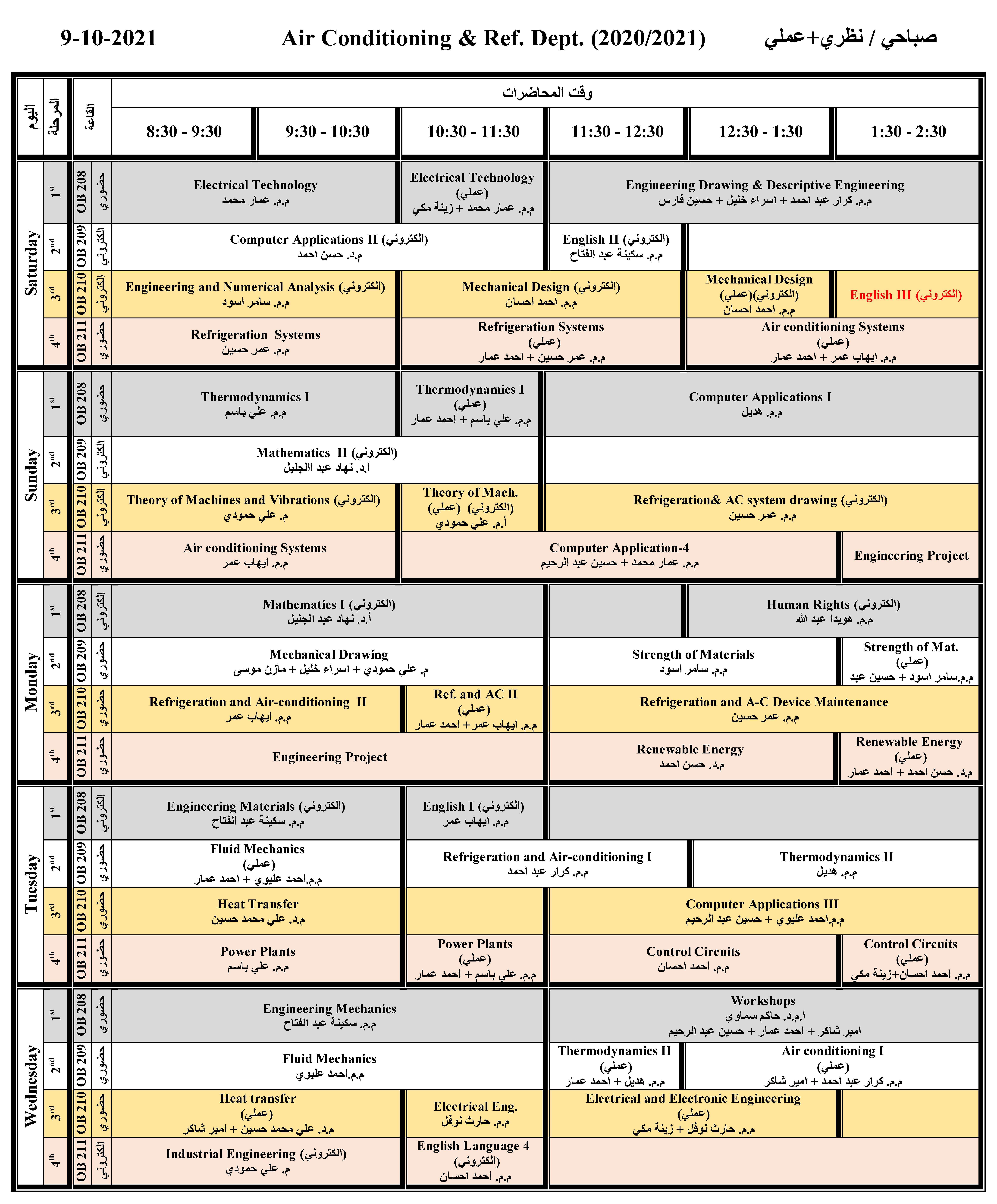 أقام قسم هندسة تقنيات التكييف والتبريد برعاية رئيس القسم اجراء الصيانة والإدامة للأجهزة المختبرية التابعة لمختبرات ميكانيك الموائع والداينمك الحراري ومختبر التبريد والتجميد ومختبر انتقال الحرارة حيث اجرى كادر القسم أعمال الصيانة وتحضير الأجهزة استعداد للموسم الدراسي القادم .