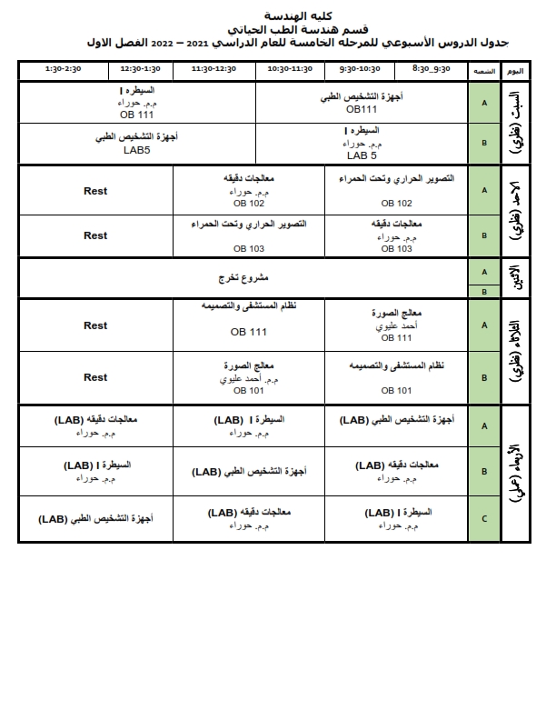 نظراً لبدء توزيع نتائج الامتحانات النهائية للفصل الدراسي الثاني من العام الدراسي 2020/2021 لطلبة قسم هندسة الطب الحياتي في يوم السبت الموافق 21/8/2021، تقرر فتح باب الاعتراض على النتائج في رئاسة القسم و لمدة ثلاث أيام غير قابلة للتمديد و ابتداءً من يوم السبت 21/8/2021.