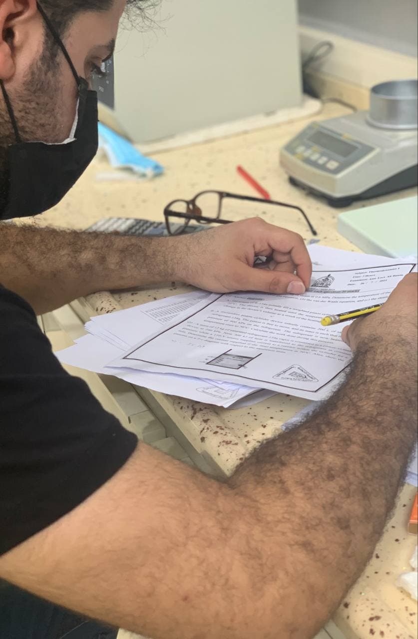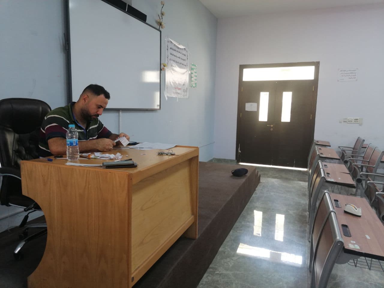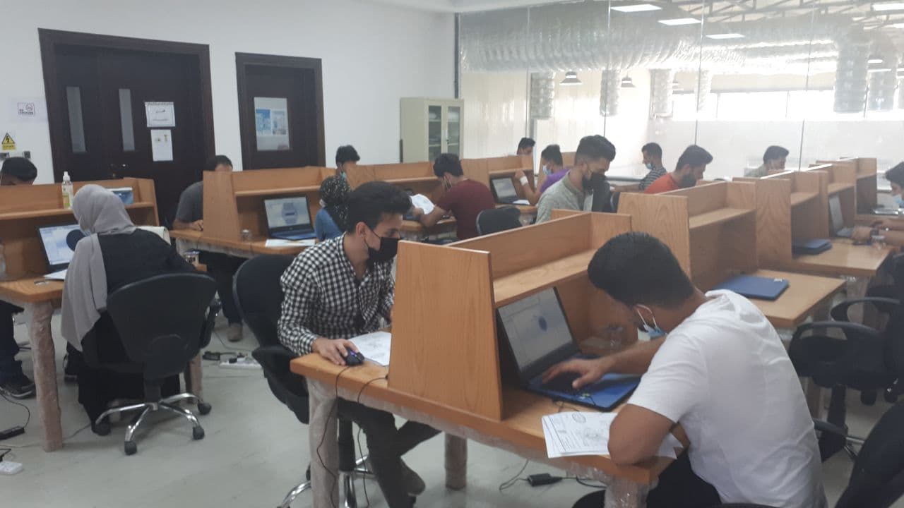 جانب من امتحان الحضوري لمادة الرسم الهندسي لطلبة المرحلة الأولى - قسم الهندسة المدنية يوم الاثنين المصادف 26/7/2021.