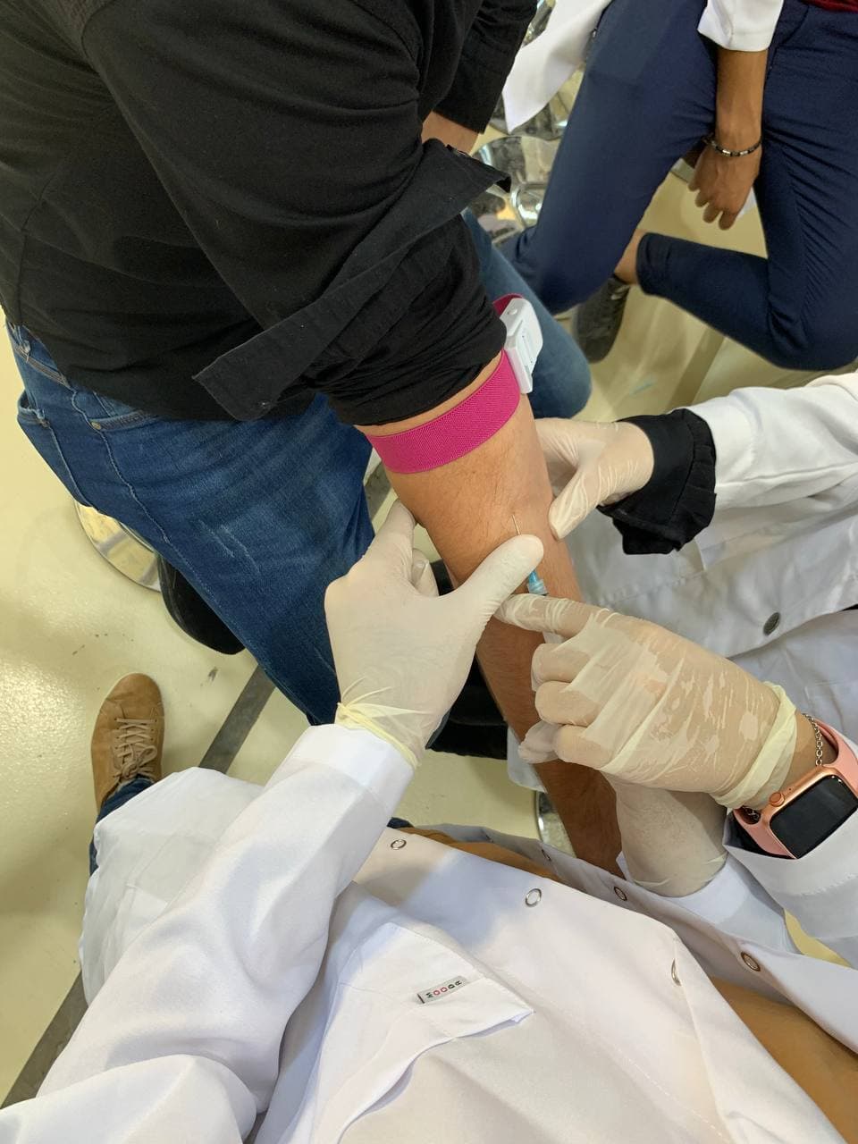انه في مختبر الكيمياء الحياتية يتعرف الطالب على أجراء بعض الفحوصات المختبرية مثل فحص السكري والدهون واليوريا …… وهذه التجارِب تعتمد على الدَّم ففي بداية كل تجربه نحاول تعريف الطالب على آلية سحب الدم.