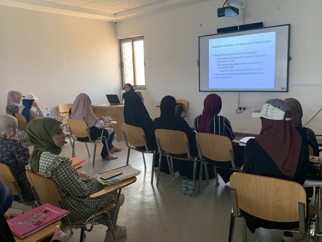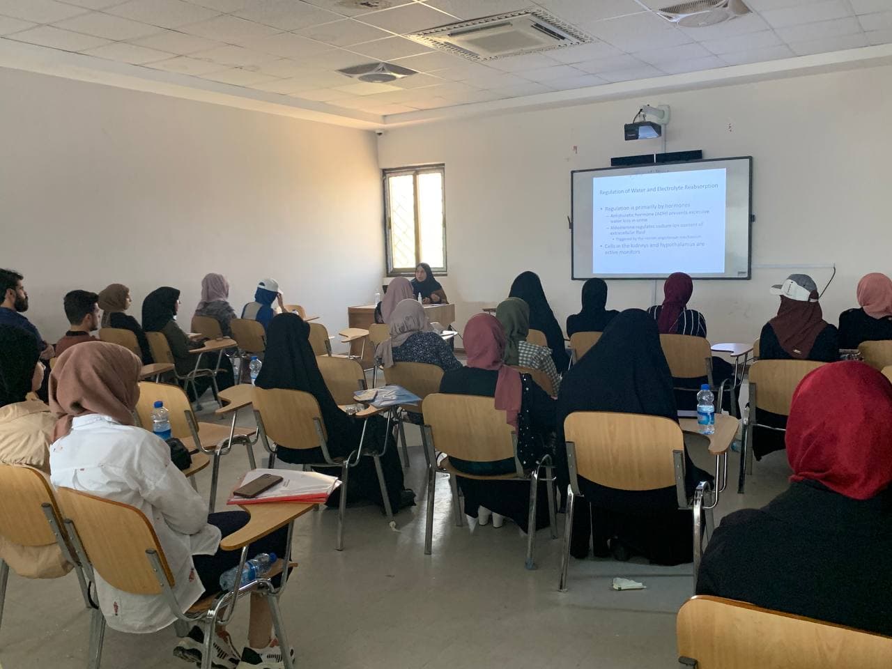 جانب من محاضرة الفسلجة الطبية التي تلقيها م.د. اسراء حبيب لطلبة المرحلة الثالثة