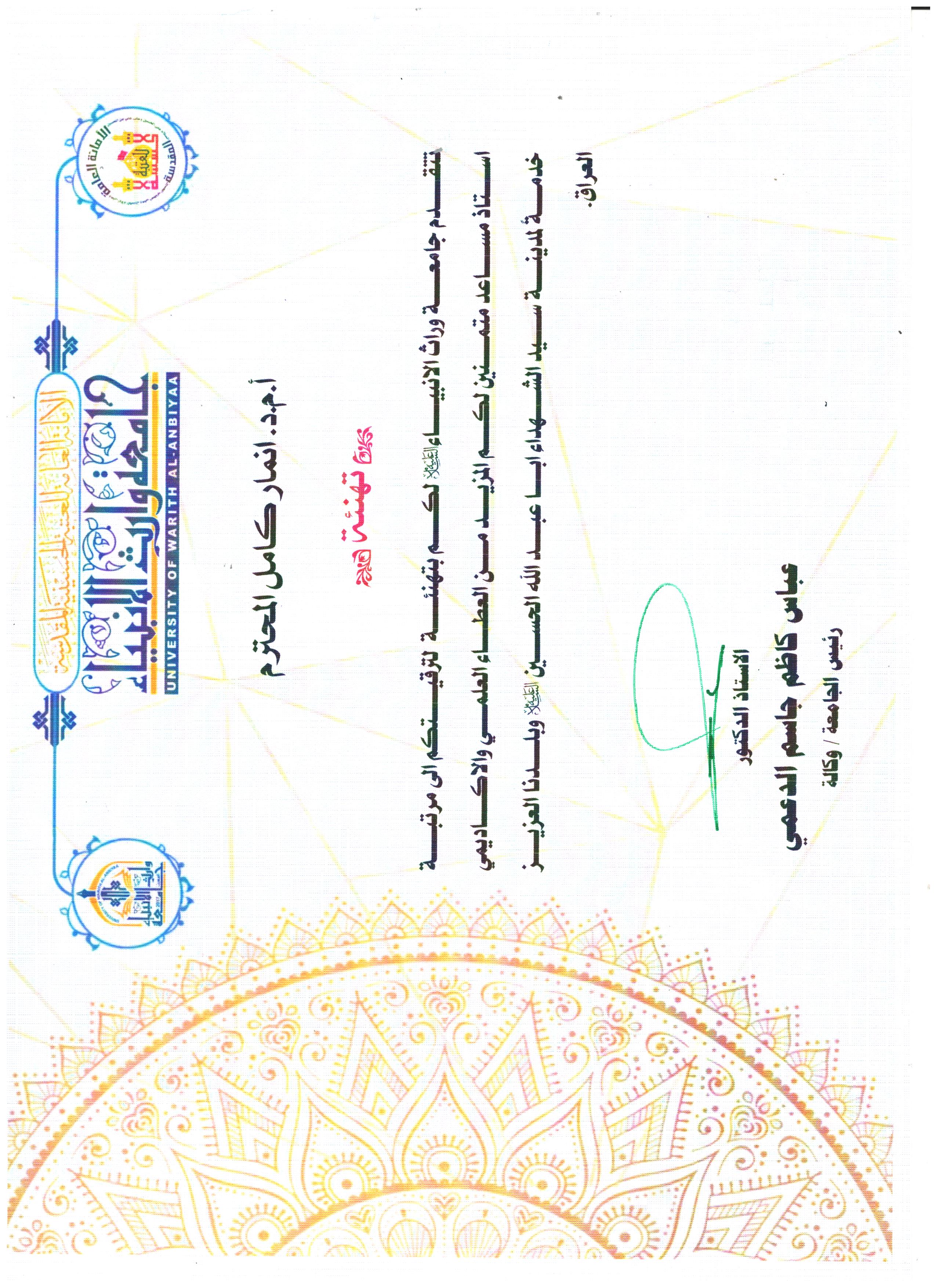 "طالب في كلية العلوم الإسلامية بجامعة وارث الأنبياء يحصد المركز الثاني في مسابقة المشروع القرآني في الجامعات"