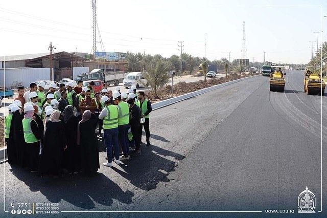 زيارة طلبة المرحلة الرابعة قسم الهندسة المدنية الى المشروع للإطلاع على الاعمال المقامة هناك حيث تفاعل الطلبة مع مهندسوا المشروع ومدير الشركة المنفذة الذي لمس من طلبتنا التميز من خلال طرحهم للأسئلة والإستفسارات التي تنم عن معرفة منهم وتمكنهم من المادة الدراسية، حيث جاءت هذه الزيارة الى المشروع انطلاقاً من حرص رئاسة الجامعة على جعل طلبة كلية الهندسة بتماس مع المشاريع العمرانية في محافظة كربلاء المقدسة لما له من اهمية في صقل مهاراتهم العملية. وجاءت هذه الزيارة بحضور السيد المساعد العلمي الاستاذ الدكتورعباس الدعمي ، وبإشراف الاستاذ المساعد الدكتور انمار فالح ديكان المتخصص هندسة الطرق.
