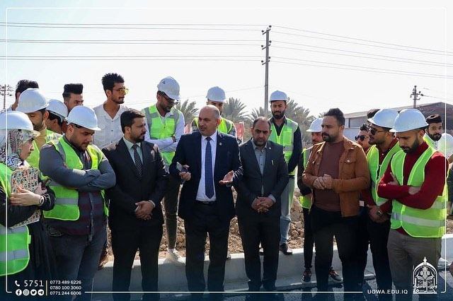 زيارة طلبة المرحلة الرابعة قسم الهندسة المدنية الى المشروع للإطلاع على الاعمال المقامة هناك حيث تفاعل الطلبة مع مهندسوا المشروع ومدير الشركة المنفذة الذي لمس من طلبتنا التميز من خلال طرحهم للأسئلة والإستفسارات التي تنم عن معرفة منهم وتمكنهم من المادة الدراسية، حيث جاءت هذه الزيارة الى المشروع انطلاقاً من حرص رئاسة الجامعة على جعل طلبة كلية الهندسة بتماس مع المشاريع العمرانية في محافظة كربلاء المقدسة لما له من اهمية في صقل مهاراتهم العملية. وجاءت هذه الزيارة بحضور السيد المساعد العلمي الاستاذ الدكتورعباس الدعمي ، وبإشراف الاستاذ المساعد الدكتور انمار فالح ديكان المتخصص هندسة الطرق.