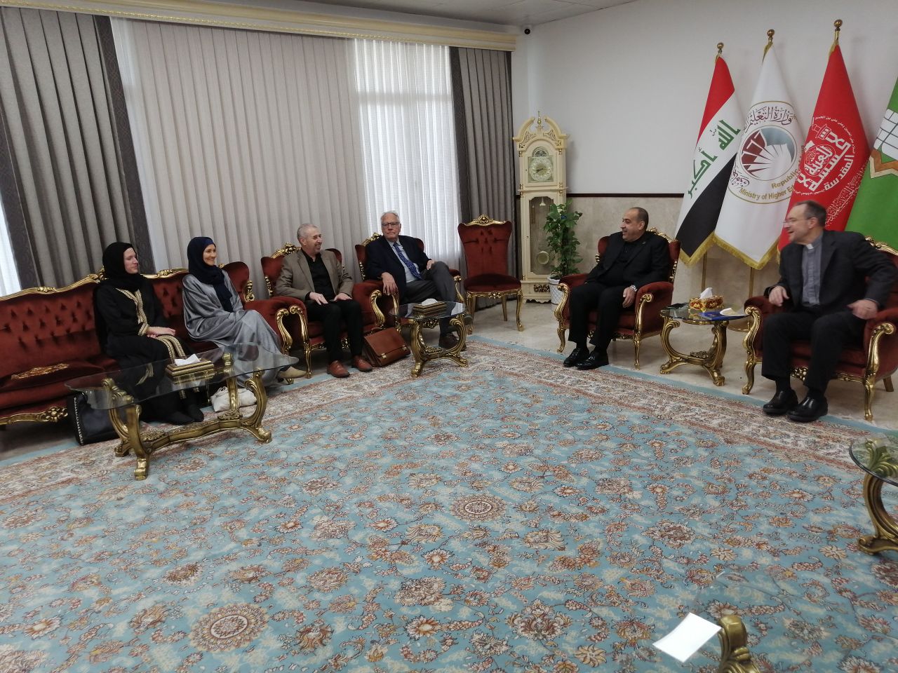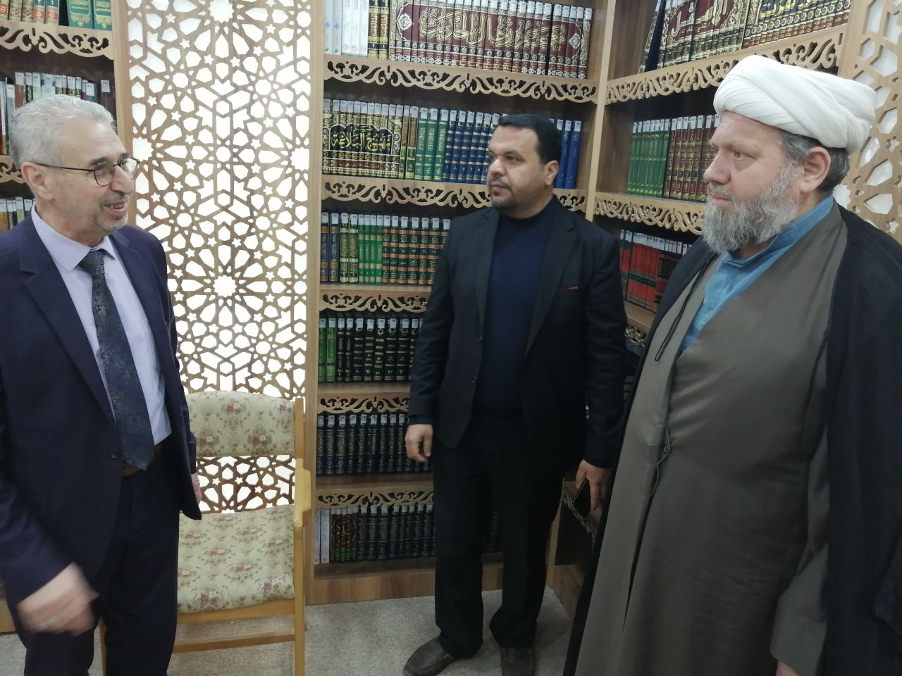 كذلك التقى الوفد بسعادة السيد عميد كلية العلوم الإسلامية، الدكتور طلال الكمالي، حيث تبادلوا وجهات النظر حول التعاون الأكاديمي والتبادل الثقافي بين الجامعتين.