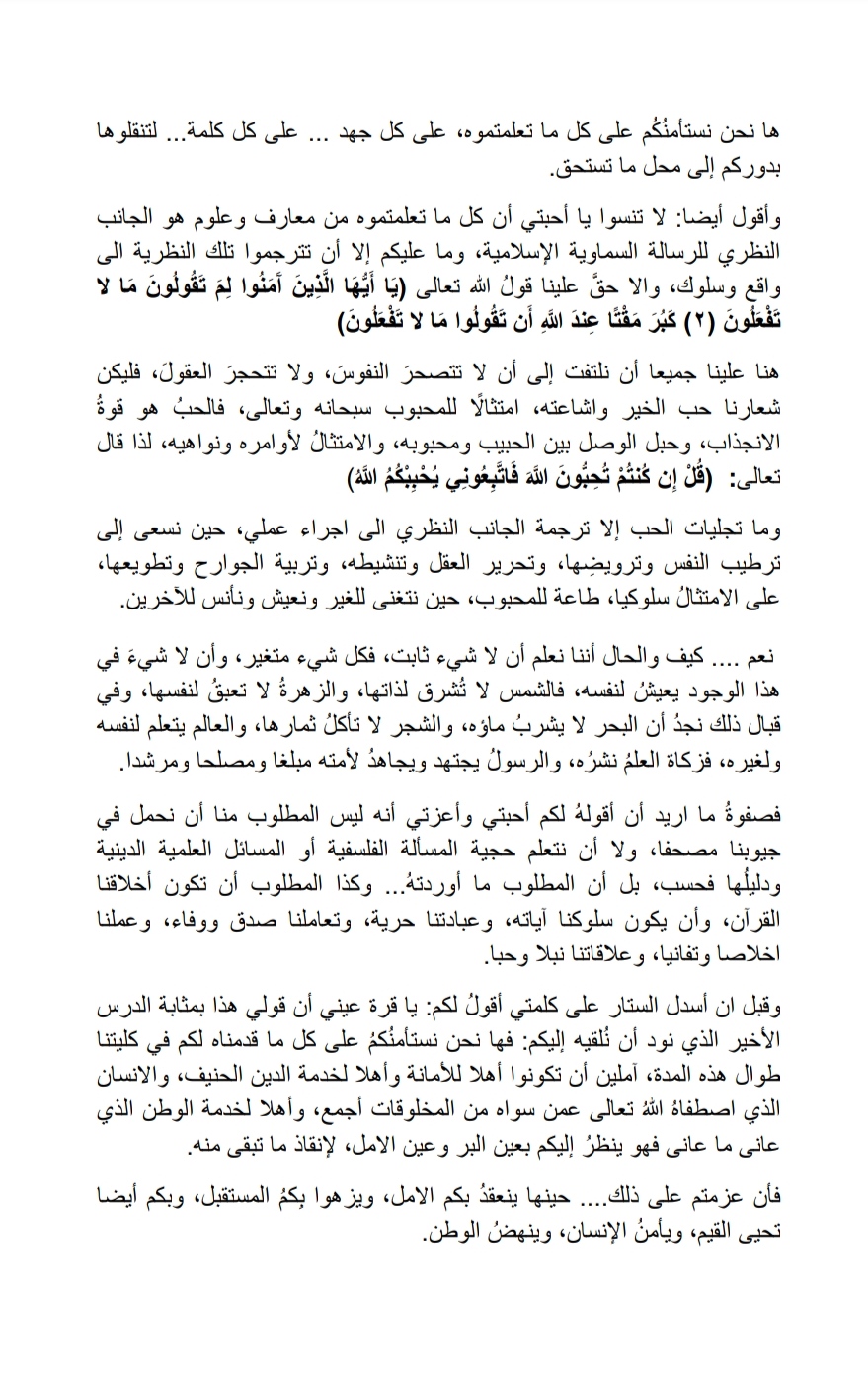 السلام عليكم ورحمة الله وبركاتهترفع عمادة كلية العلوم الاسلامية في جامعة وارث الانبياء بكل كادرها التدريسي والاداري اجمل التهاني وازكى التبريكات لاحبتها الطلبة خريجي المرحلة الرابع التي تعد باكورة جهد توج بثلة مؤمنة وصالحة من طلبتها الاحبةاملين ان يترجموا ما تعلموه من نظام رسالة السماء وعلوم اهل البيت الى سلوك عملي في ميدان حياتهم بما يتناسب ووظيفتهم الشرعية وحجتهم العقلية خدمة للدين والإنسان والوطنوالسلام عليكم ايها الاحبة خريجي دفعتنا الاولى ورحمة وبركاته