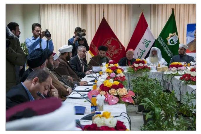 واشار كذلك  الى ان " الملتقى شهد حضور زعيم الكلدانيين وزعيم الصابئة المندائيين وممثل الايزيدين ومسؤول المجمع الفقهي العراقي وامام جامع ابو حنيفة النعمان وجمع من فضلاء الحوزة العلمية في النجف الاشرف".