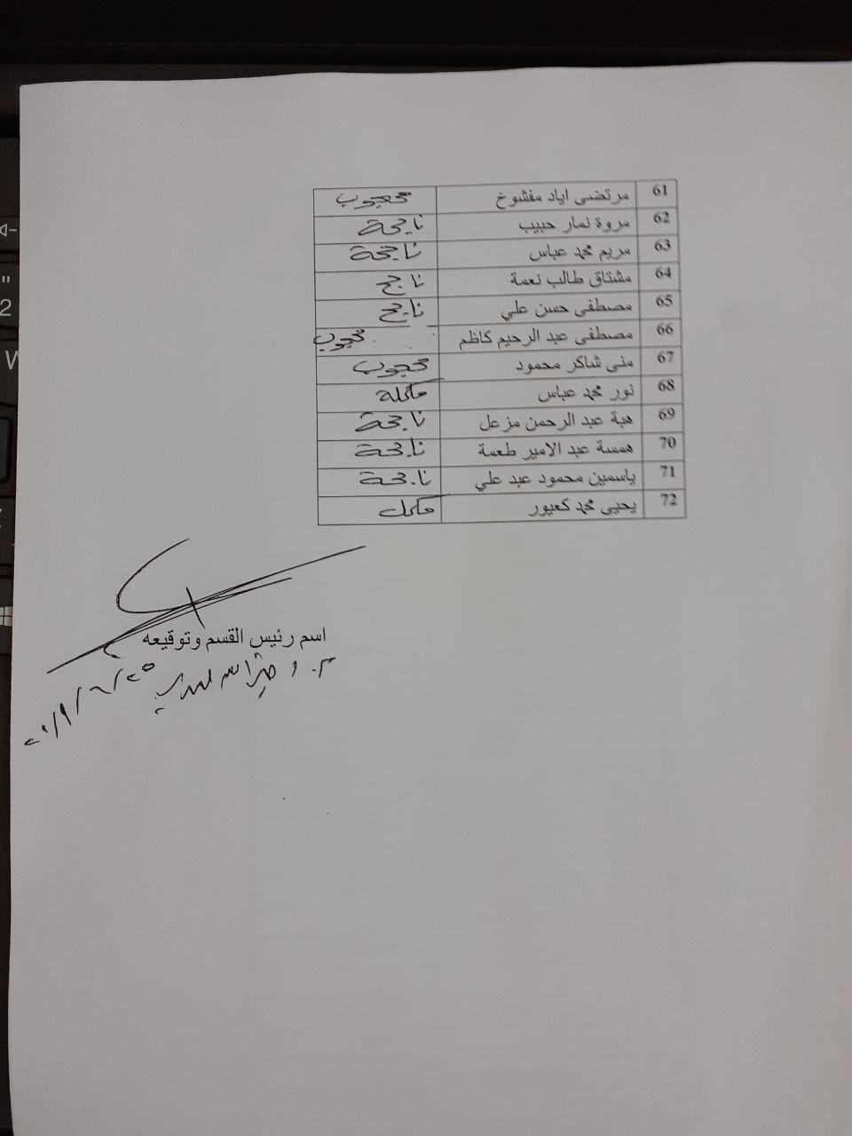 نتائج طلبة كلية العلوم الاسلامية / قسم علوم القرآن