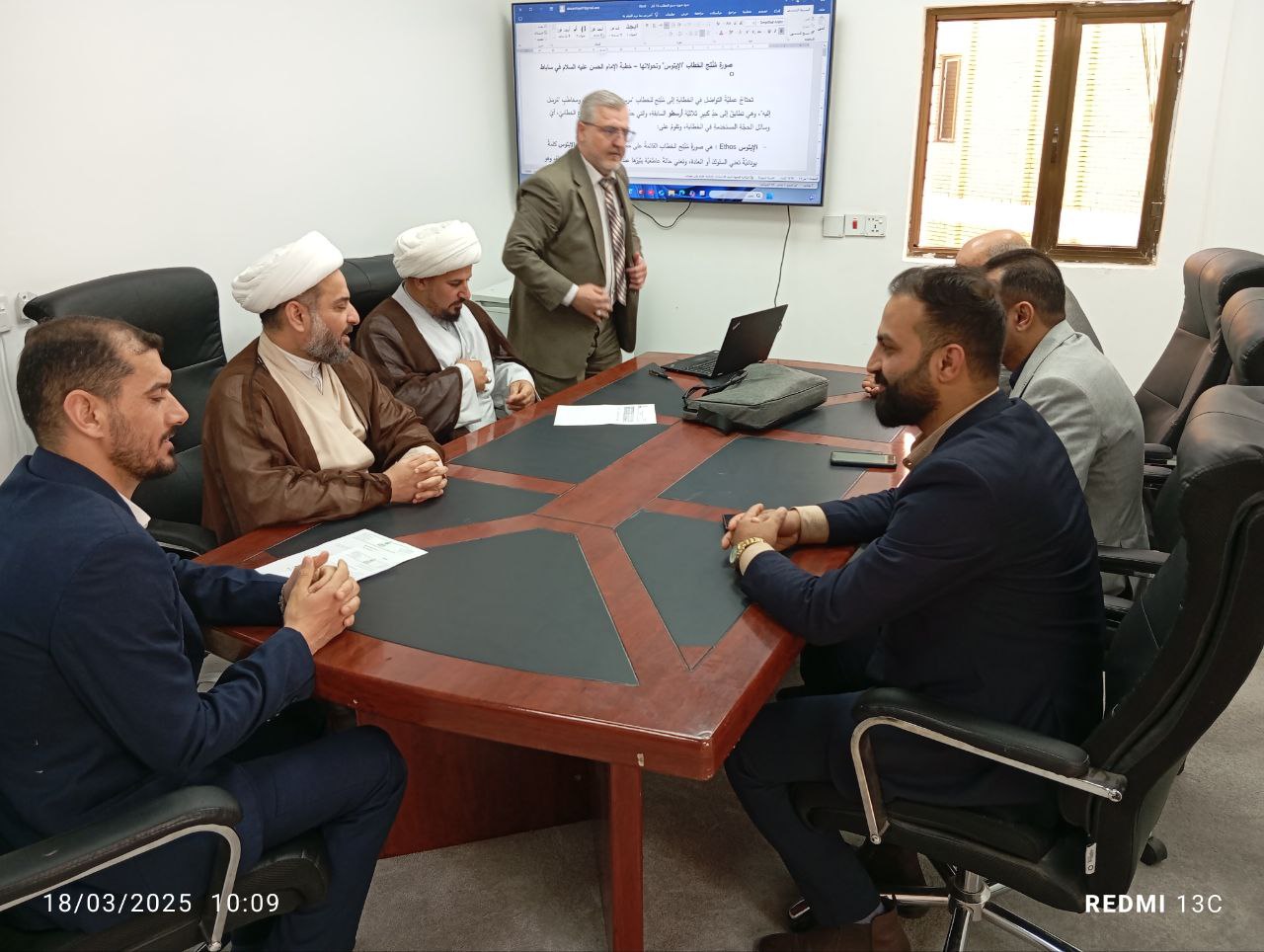 نظمت كلية العلوم الإسلامية ندوة علمية بعنوان "صورة منتج الخطاب وتحولاته - خطبة الإمام الحسن عليه السلام في ساباط أنموذجاً"، ألقاها الدكتور أكسم أحمد.