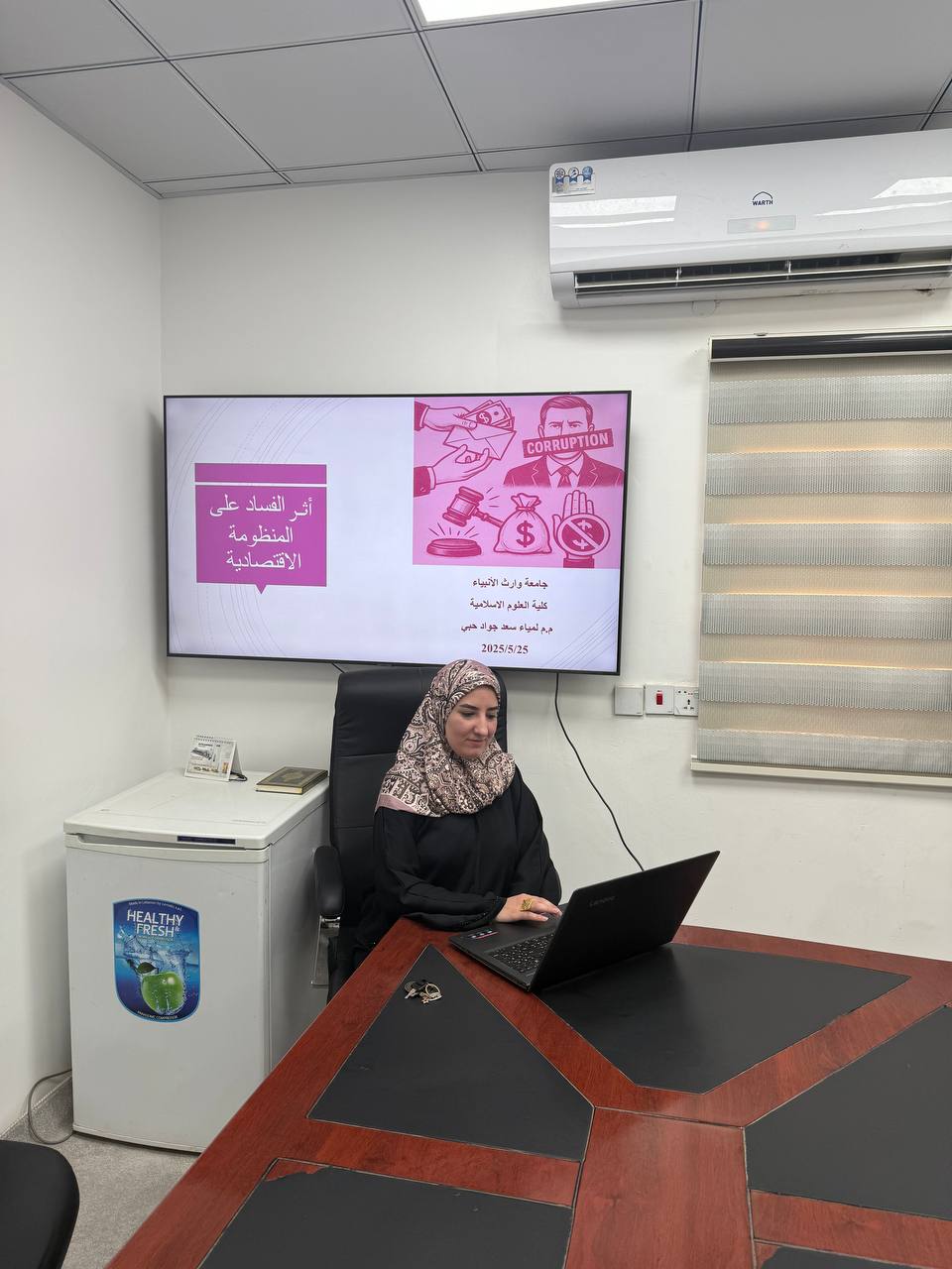 "أثر الفساد الإداري على المنظومة الاقتصادية"، قدّمتها التدريسية م.م. لمياء سعد حبي، و ذلك على قاعة مجلس الكلية.