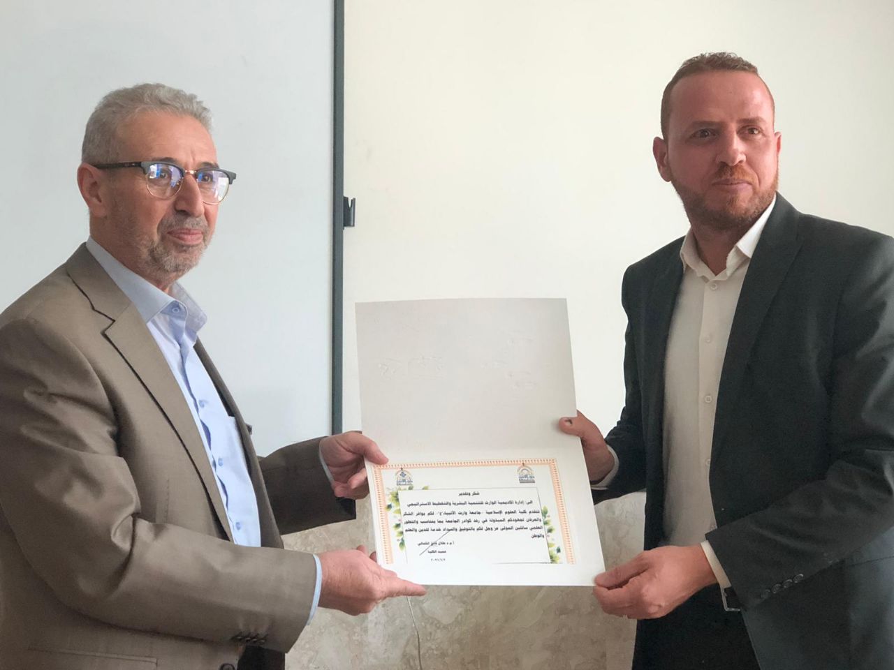 وفي نهاية الوحدة التدريبية قدم عميد كلية العلوم الإسلامية الدكتور طلال فائق الكمالي كتب شكر وتقدير للقائمين والمساهمين في الدورة تثمينا لجهودهم المبذولة