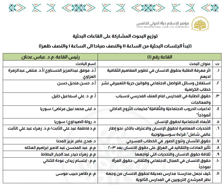 أبحاث المؤتمر العلمي الخامس "الإسلام حياة" الموسوم بـ "حقوق الإنسان والتحديات المعاصرة"