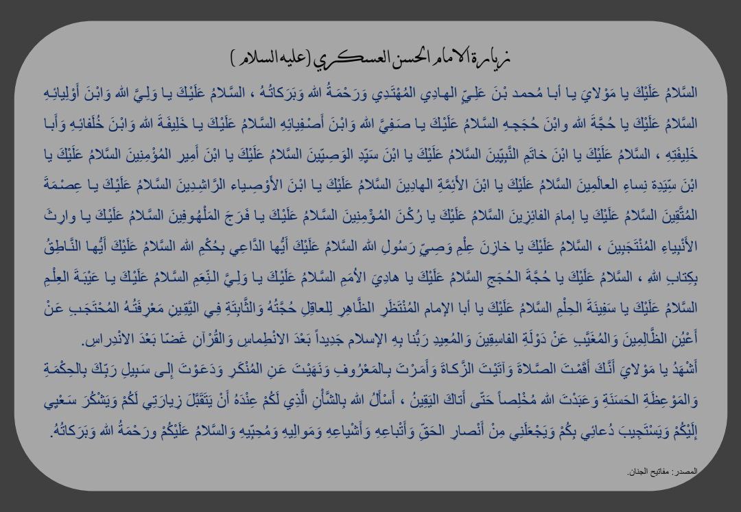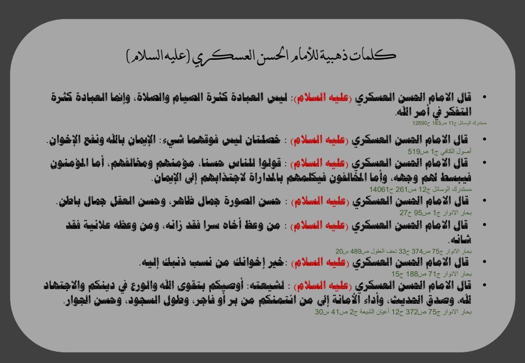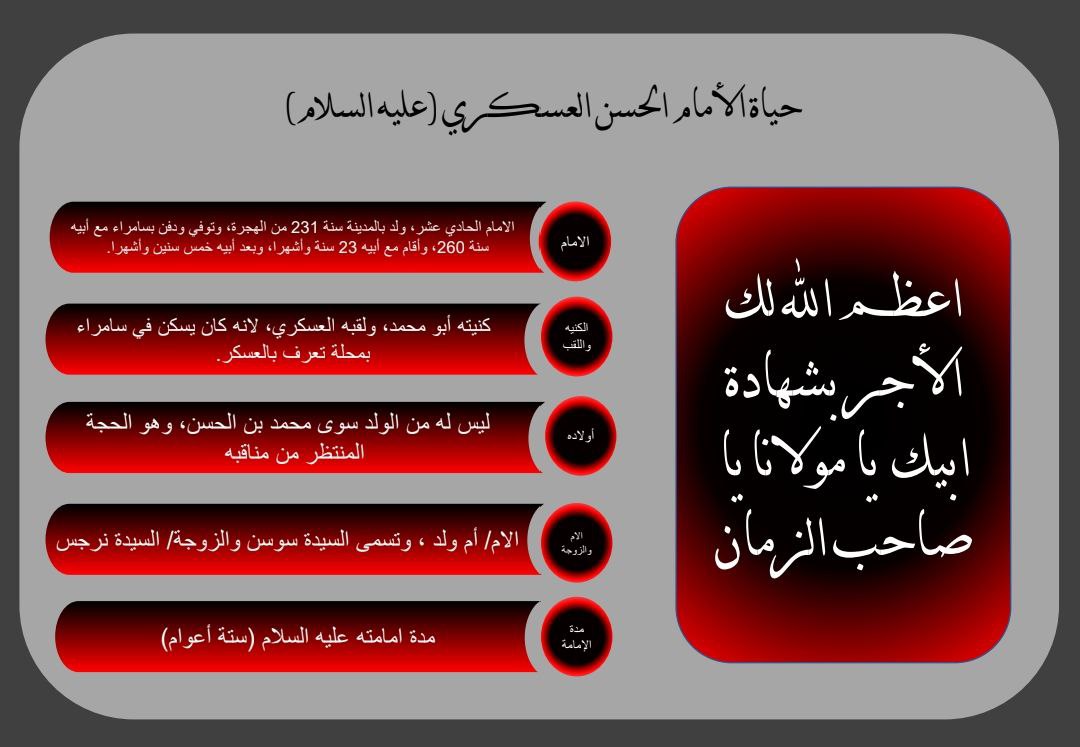 الى مقام صاحب العصر والزمان (عجل الله فرجه الشريف) ومراجعنا العظام والأمّة الإسلامية جمعاء بذكرى شهاد الإمام الحسن العسكري (عليه السلام)